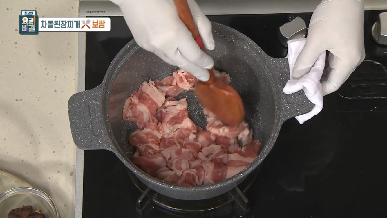 말려 있는 차돌박이는 풀어 가며 볶아주시고 차돌된장찌개에서 가장 중요한 차돌박이 기름이 충분히 나올 때까지 볶는 것이 핵심입니다