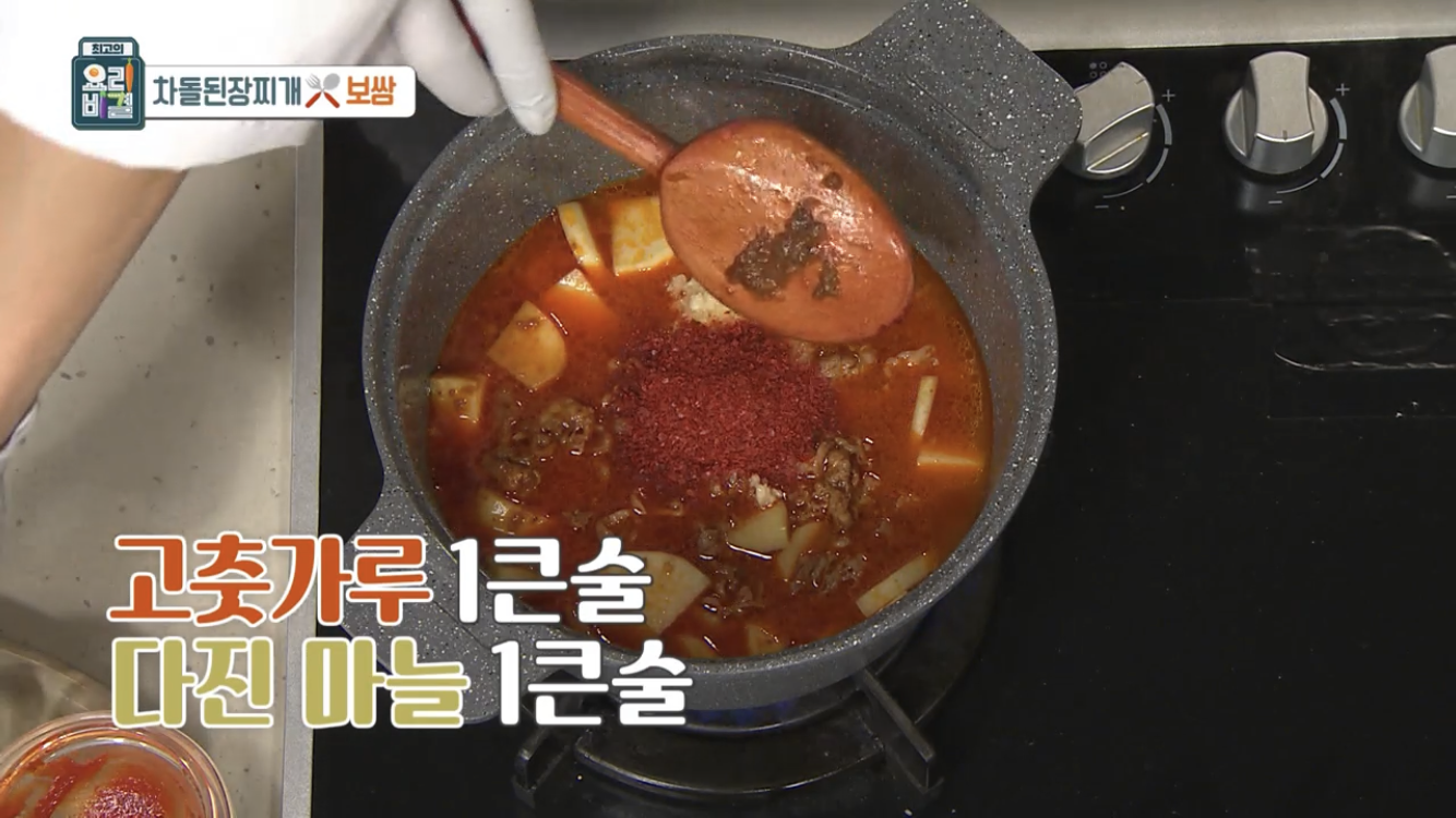 민요한 셰프님은 된장만 넣을 경우 된장찌개 맛이 심심해서 고추장도 1큰술 넣는다고 합니다