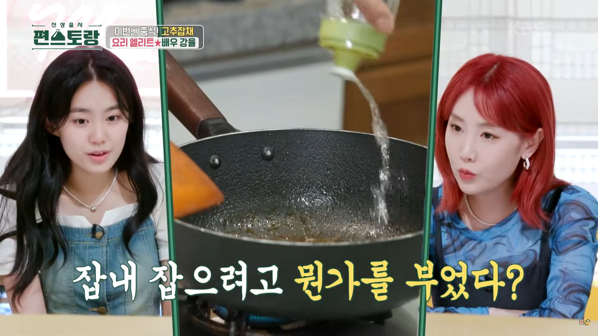 편스토랑에서 배우 강율 씨가 만든 가지튀김 고추잡채입니다