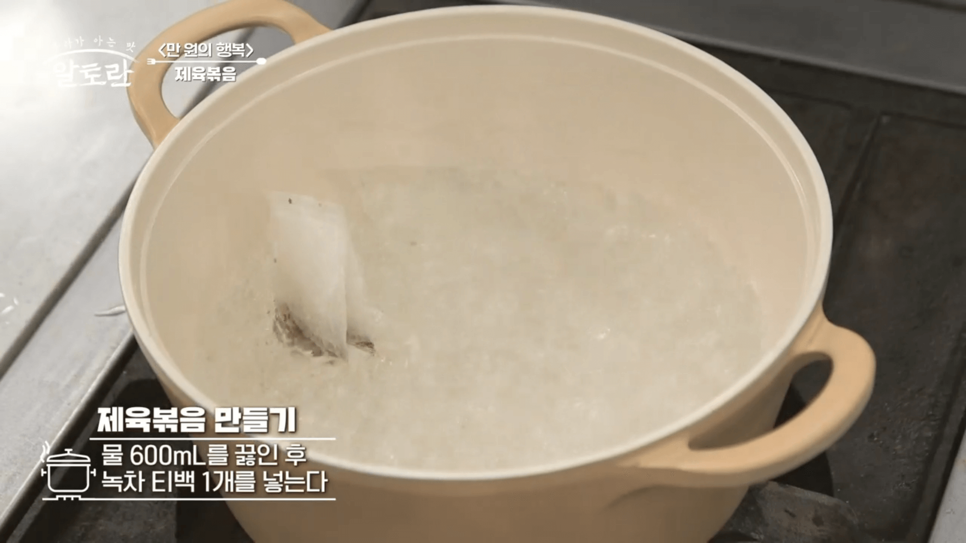 이때 녹차 티백을 사용한 이유는 녹차의 카테킨 성분이 연육 작용으로 고기의 육질이 야들야들해지고 돼지고기 잡내 제거에 도움을 준다고 합니다