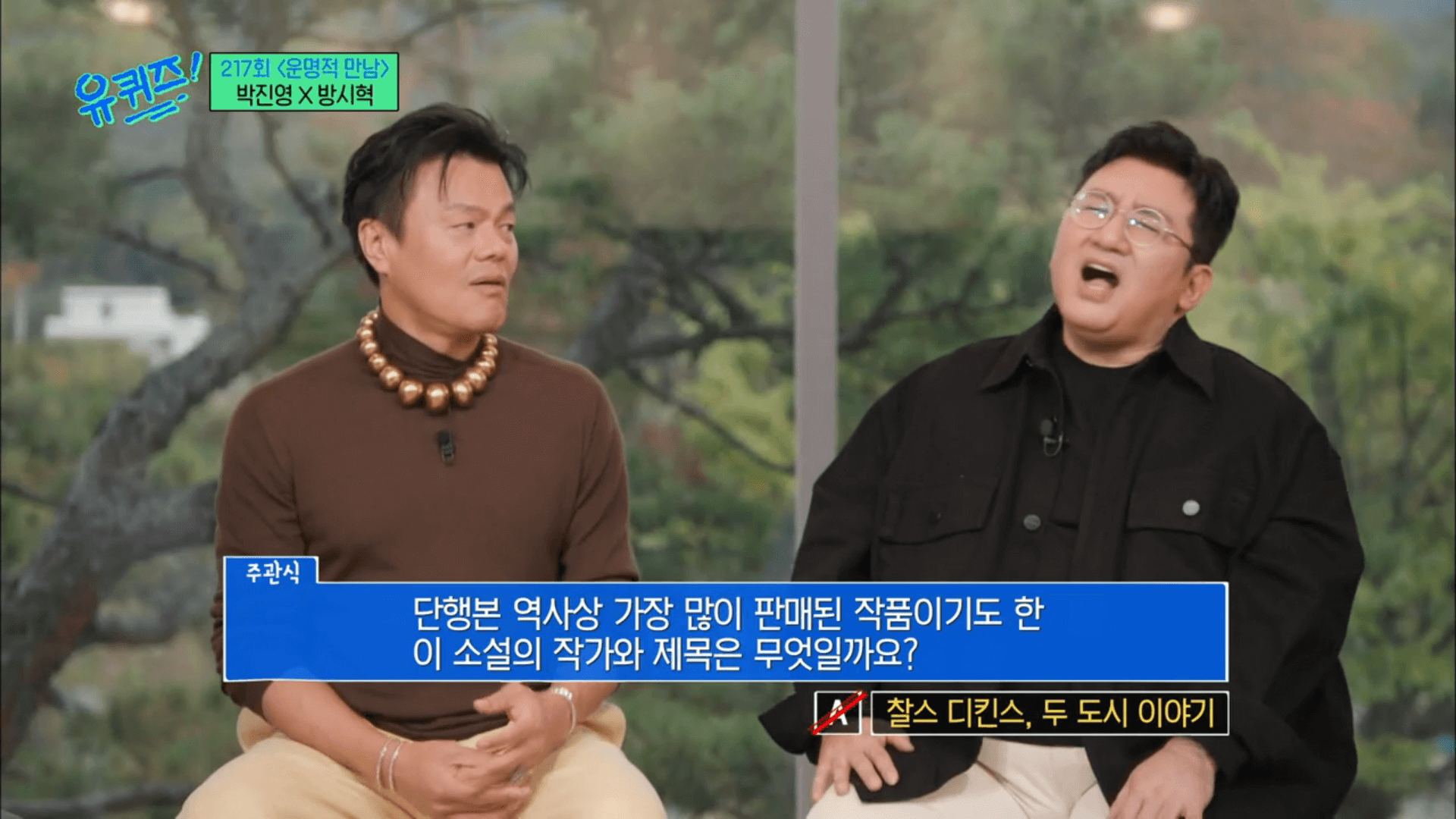 유 퀴즈 온 더 블럭 217회 박진영 방시혁 편