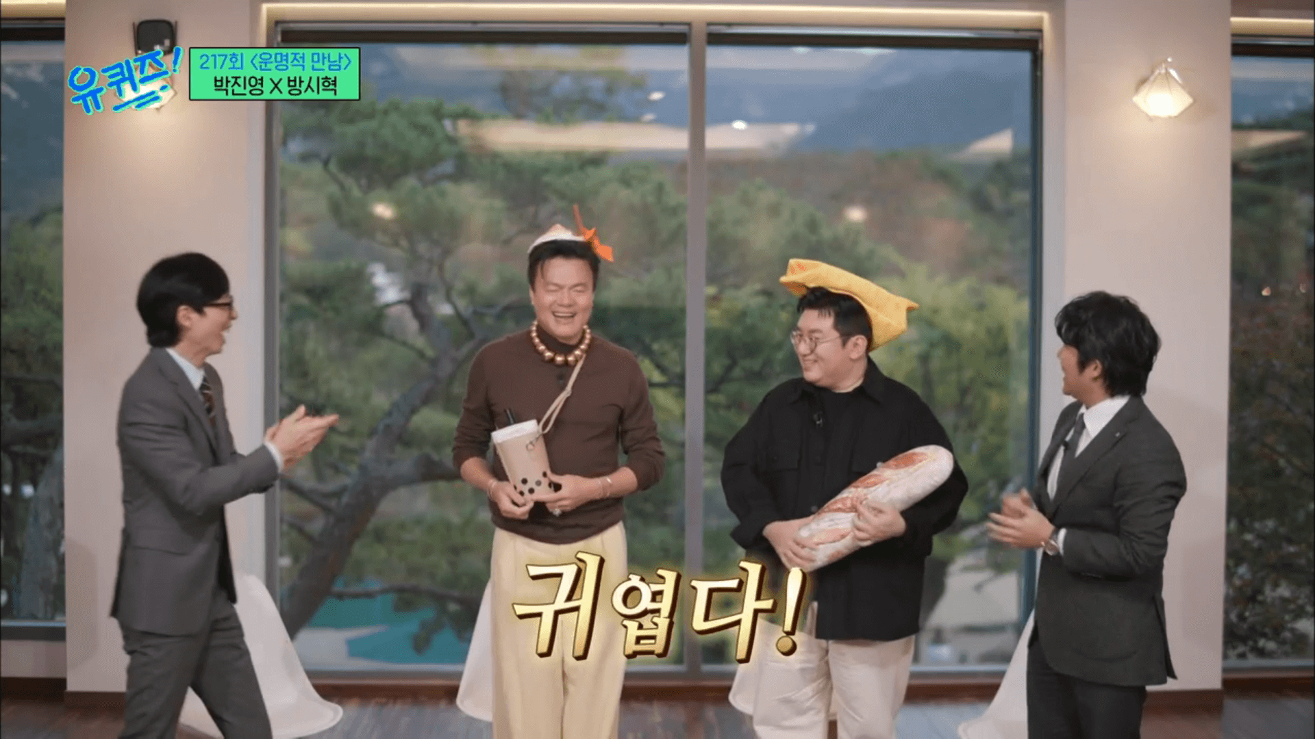 유 퀴즈 온 더 블럭 217회에 박진영 씨와 방시혁 씨가 함께 출연하셨습니다