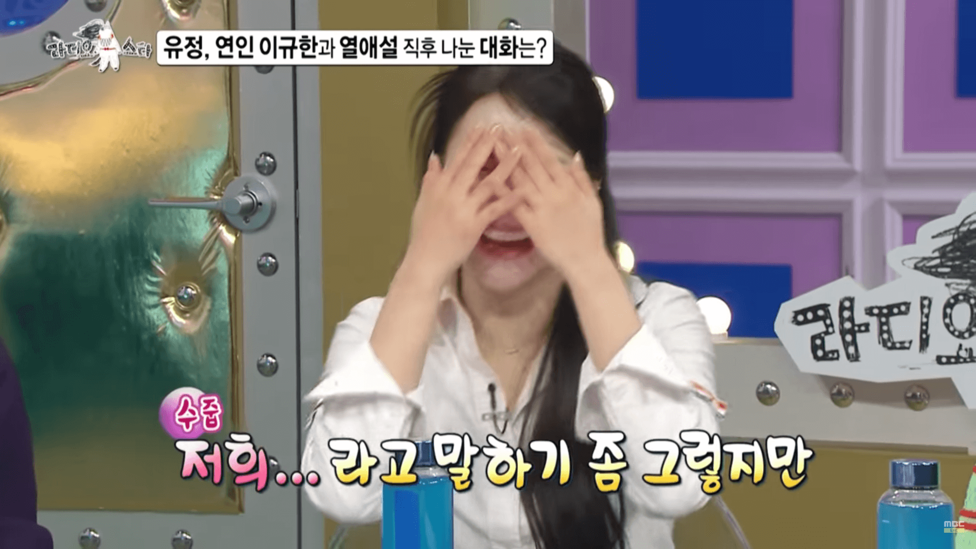 라디오 스타 MC 김국진 씨가 브브걸 유정 씨의 최근 열애 소식에 대해 묻자 쑥스러워하면서 말하는 유정 씨