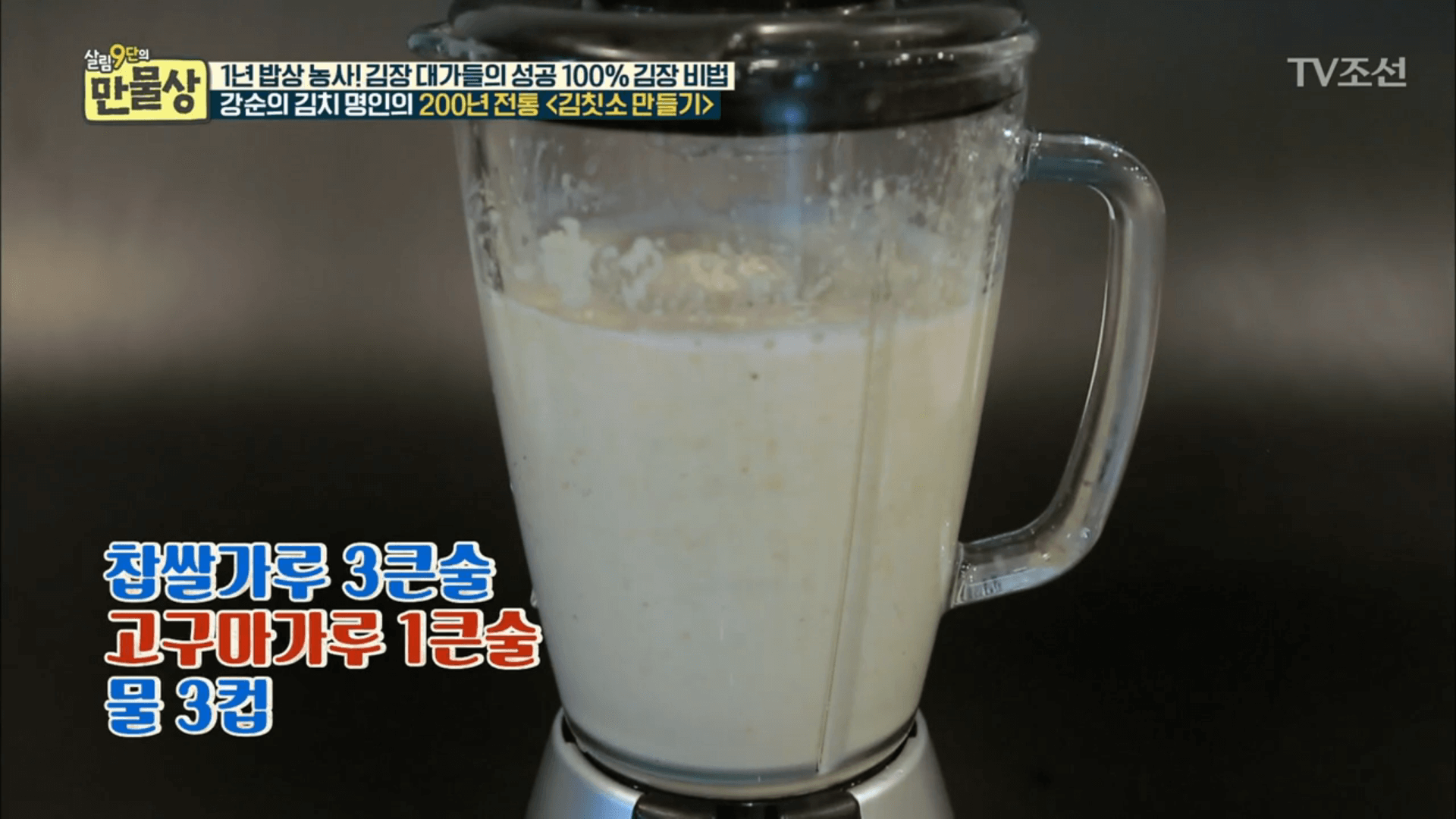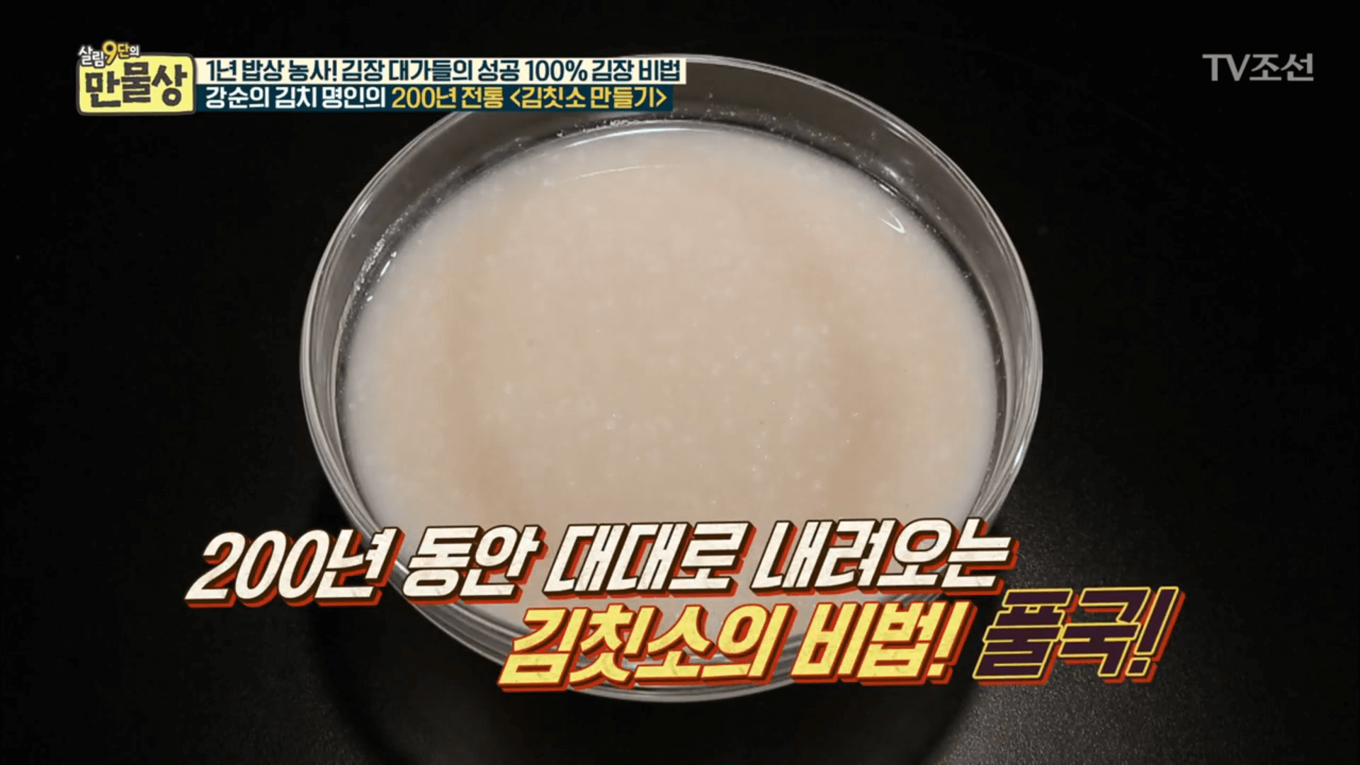 살림 9단의 만물상에 나온 김치 명인 강순의 여사님이 200년 동안 대대로 내려오는 김장 비법 중 김칫소의 비법인 풀국 만드는 방법을 알려주셨습니다
