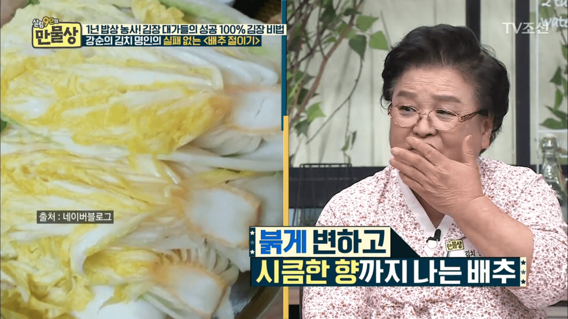 2023.11.22 - [방송리뷰] - 김장 양념 버무리기 절임 배추 양념 묻히기 감싸기 강순의 김치 명인의 황금 비법