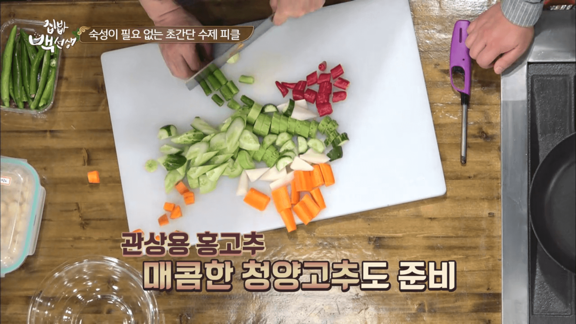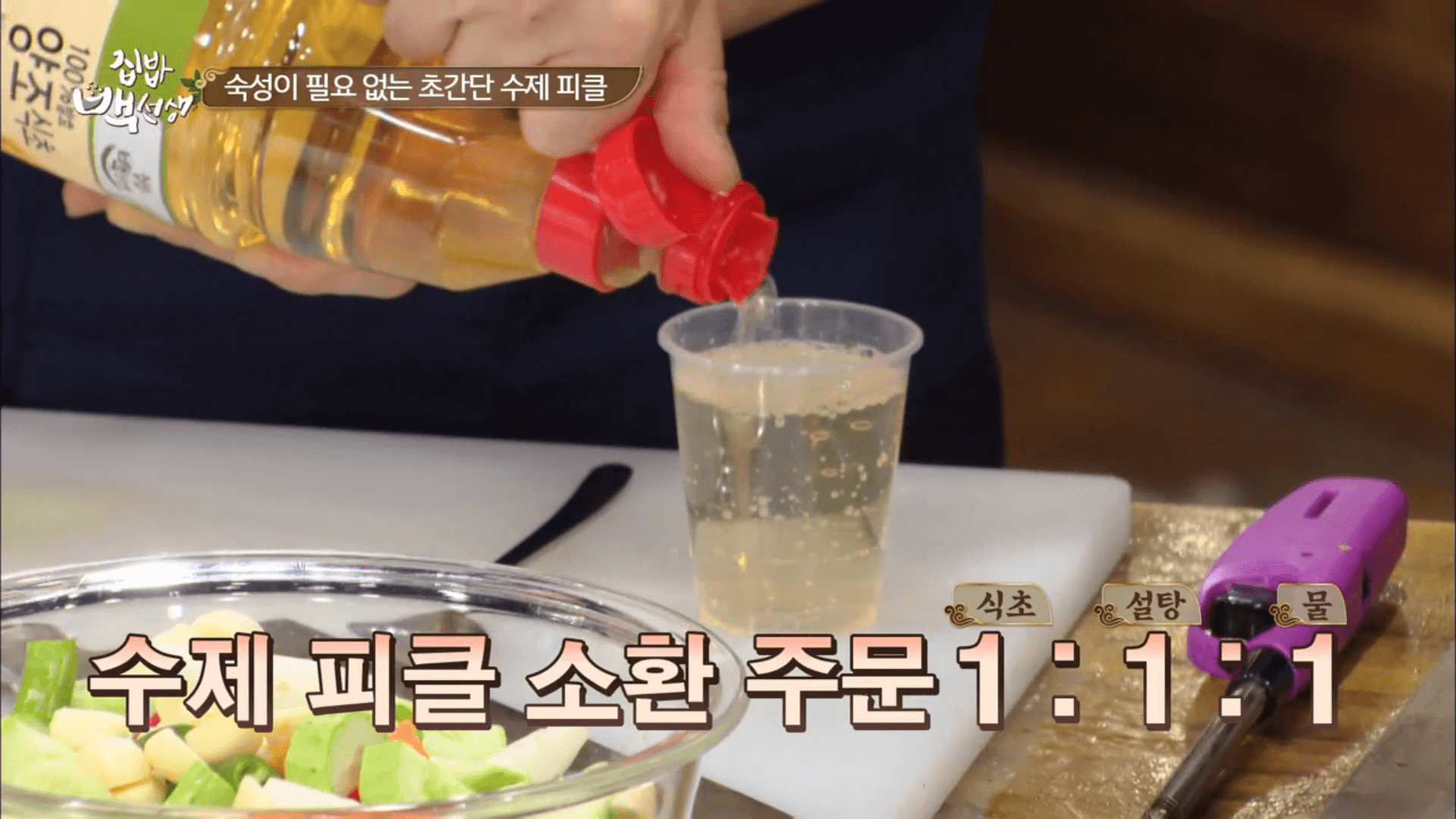 그런데 집밥 백선생에서 백종원 선생님이 숙성 없이 한두 시간 안에 빠르게 피클 만드는 방법을 알려주셨습니다