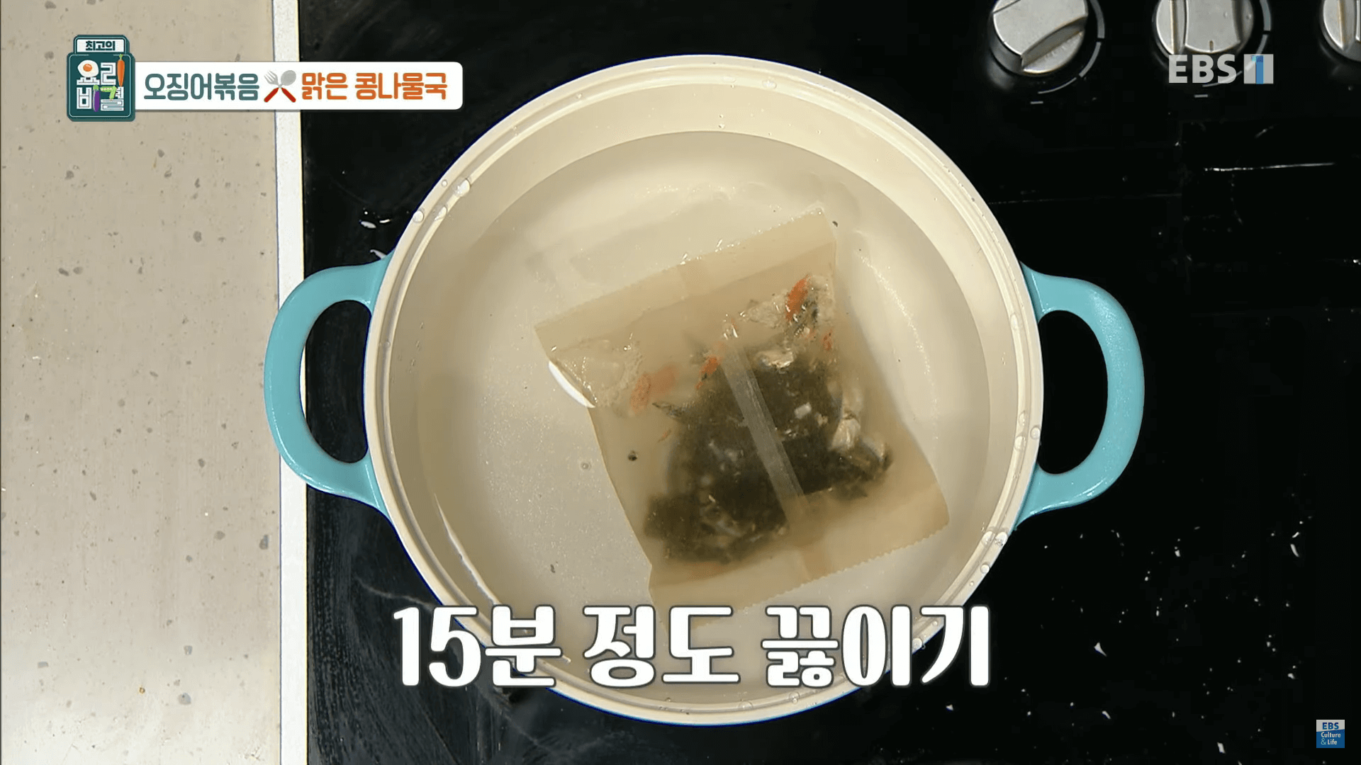 2. 다시 백 넣은 물을 냄비에 붓고 15분 정도 끓여줍니다