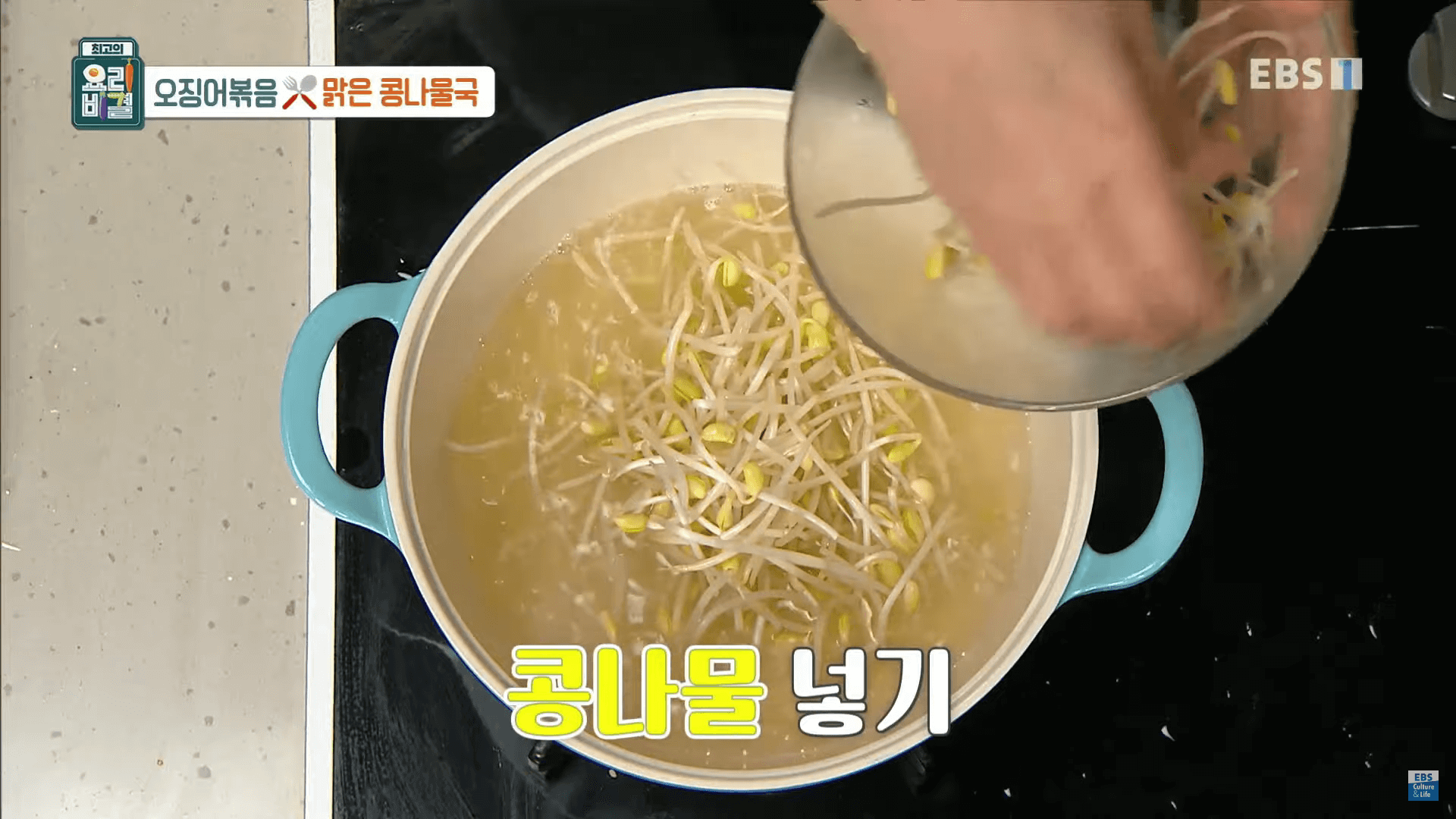 콩나물을 익힐 때 뚜껑을 닫아야 하는지 열어야 하는지 헷갈리시는 분들도 있을 텐데 이종임 요리연구가님이 열거면 처음부터 콩나물이 익을 때까지 뚜껑을 열어서 끓이고 닫을 거면 처음부터 익을 때까지 뚜껑을 닫고 끓이면 된다고 합니다