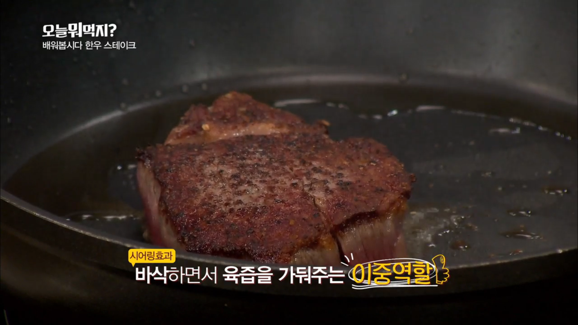시어링 효과로 고기 표면을 바삭하게 구워 겉은 바삭하면서 속에 육즙을 가둬주는 이중역할을 한다고 합니다
