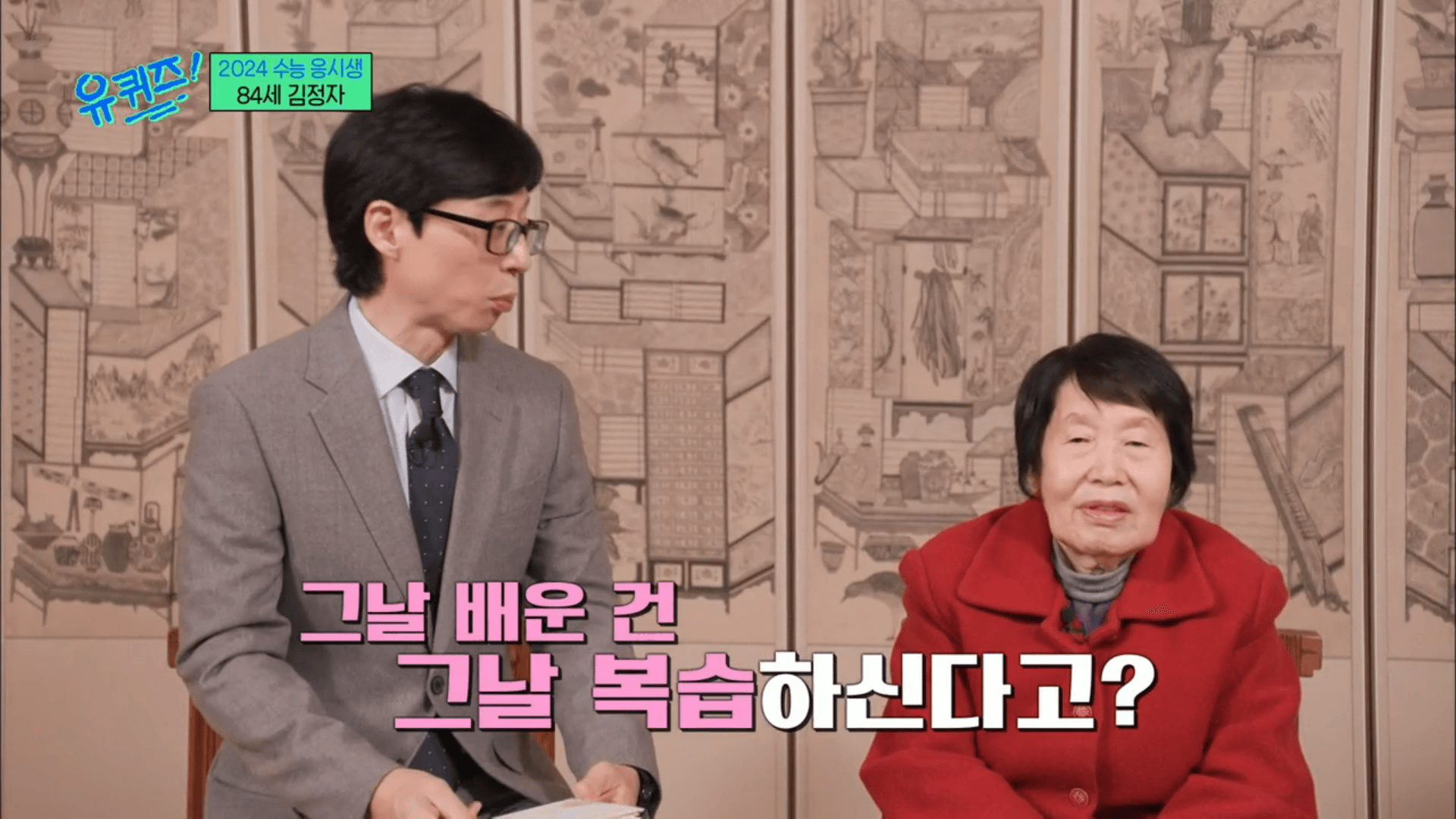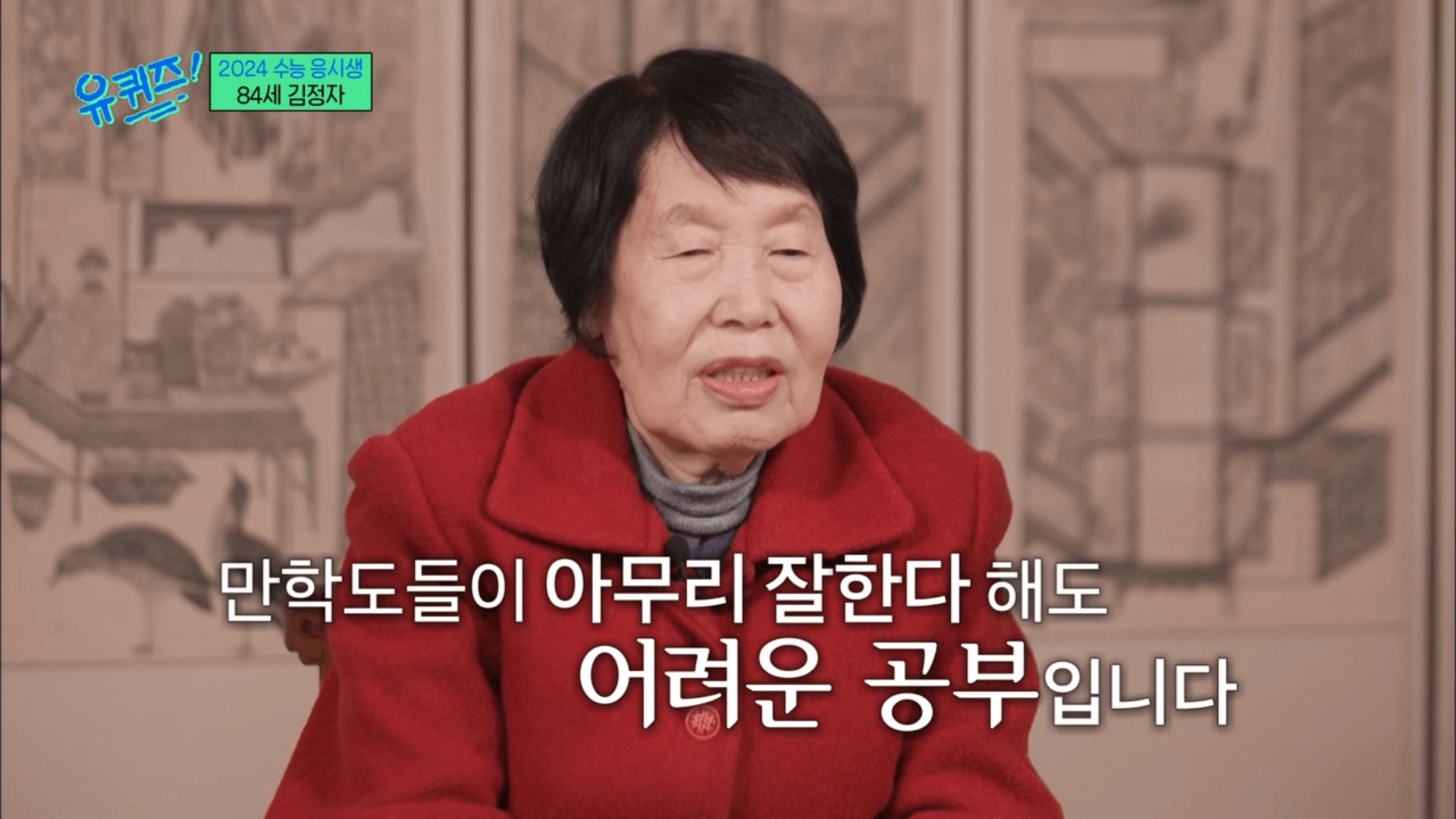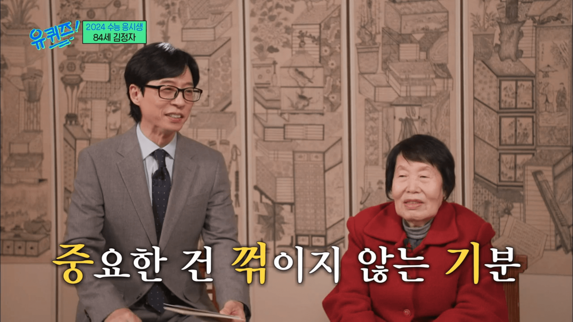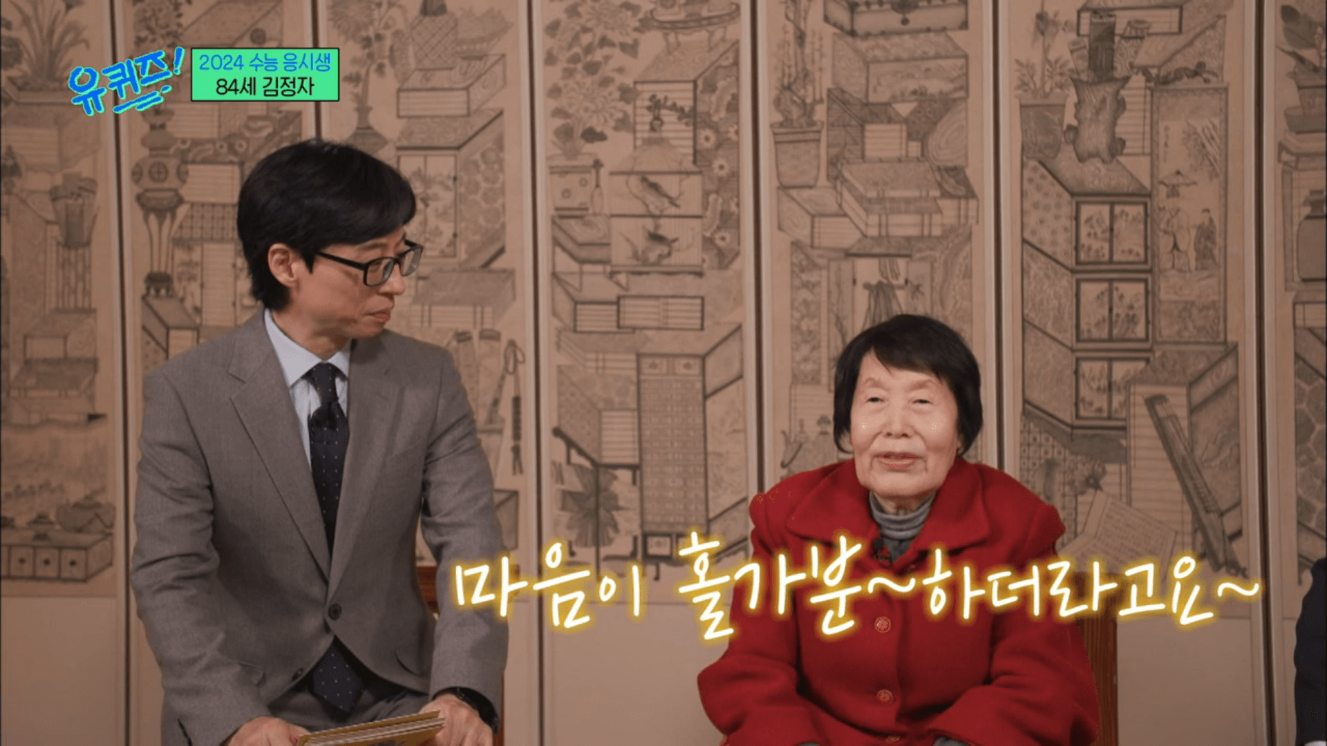 유퀴즈 온더블럭 223회에 84세에 수능 응시한 수험생 김정자 할머니께서 나오셨습니다