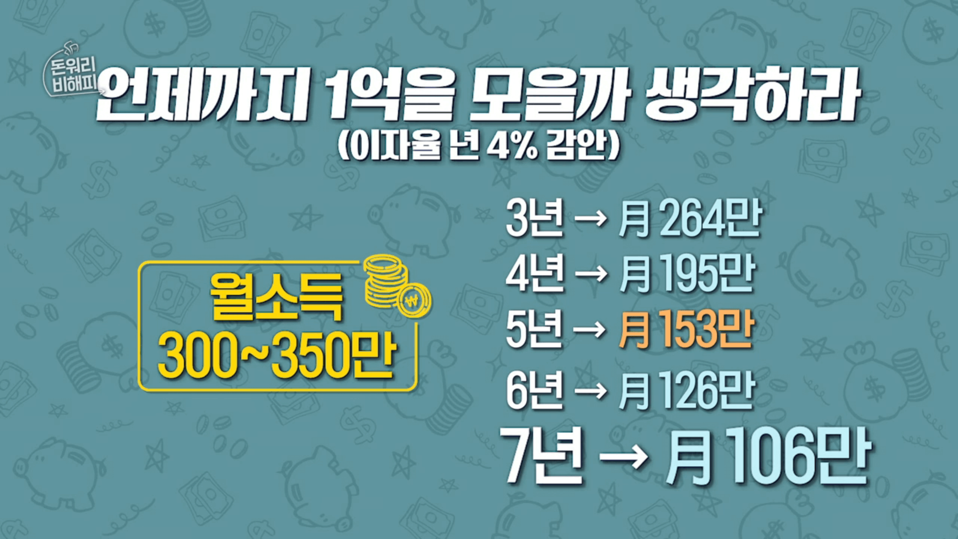 오늘은 돈워리 비해피에 나온 5년에 1억 모으기 저축 방법에 대해 소개해 드리겠습니다