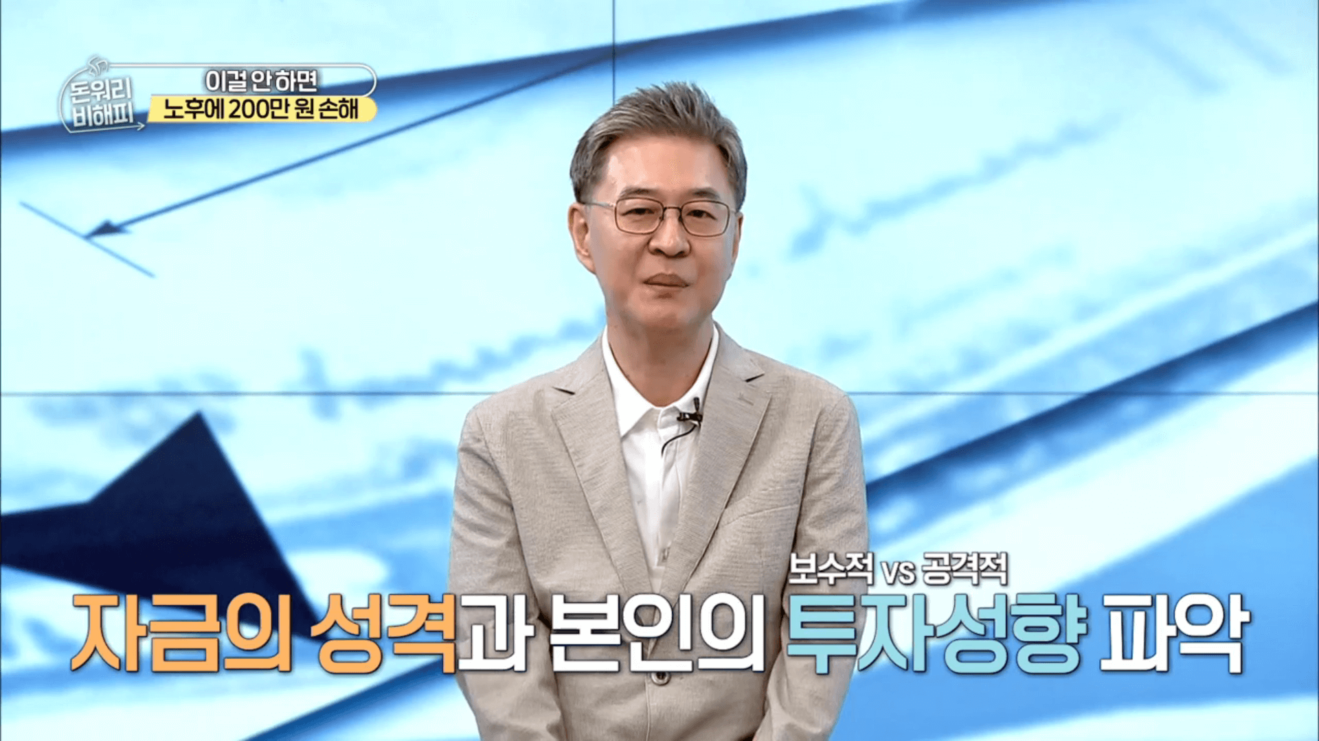 종잣돈 1억으로 처음 투자하는 50대와 60대분들에게 권하는 투자 전략에 대해 질문하자 일단 사전에 고려해봐야 하는 건 자금의 성격과 본인의 투자 성향을 파악해야 한다고 합니다