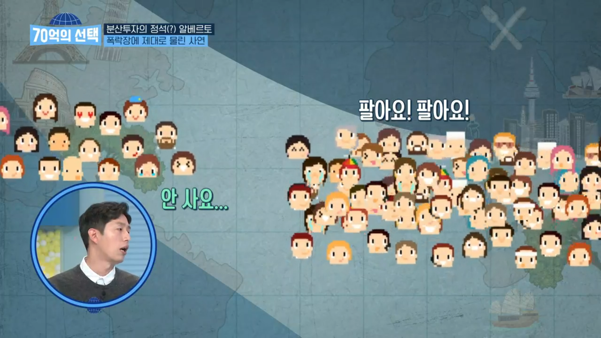 모두가 좋다고 사라고 해서 갖고 있던 주식은 모두가 갖고 있으니까 나중에 팔 사람은 많고 살 사람은 없기 때문에 그 기업이 아무리 잘해도 결국에는 주가하락으로 이어진다고 합니다