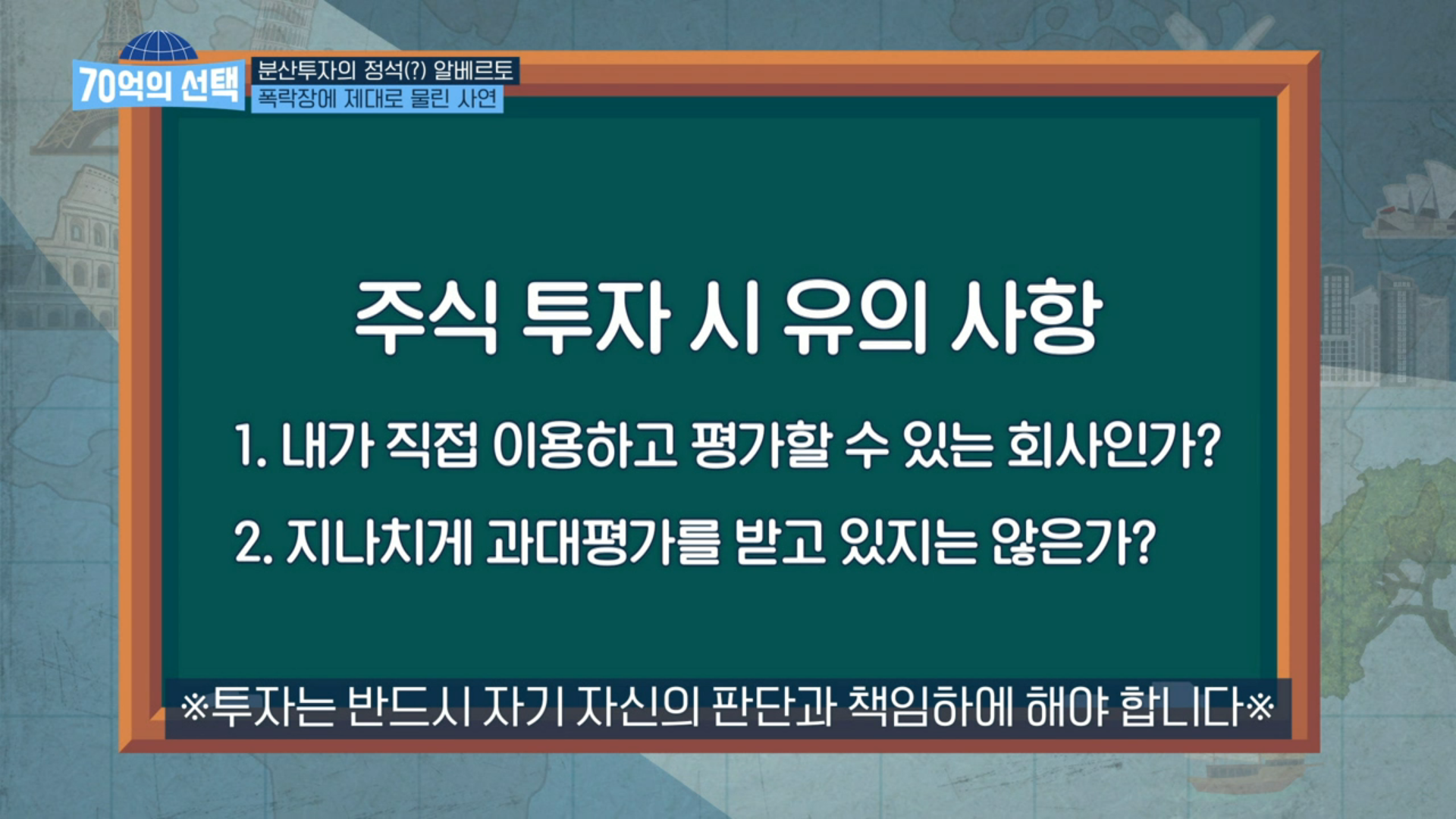 70억의 선택에 나온 펀드매니저 김현준 씨가 주식투자 시 유의 사항에 대해 알려주셨습니다