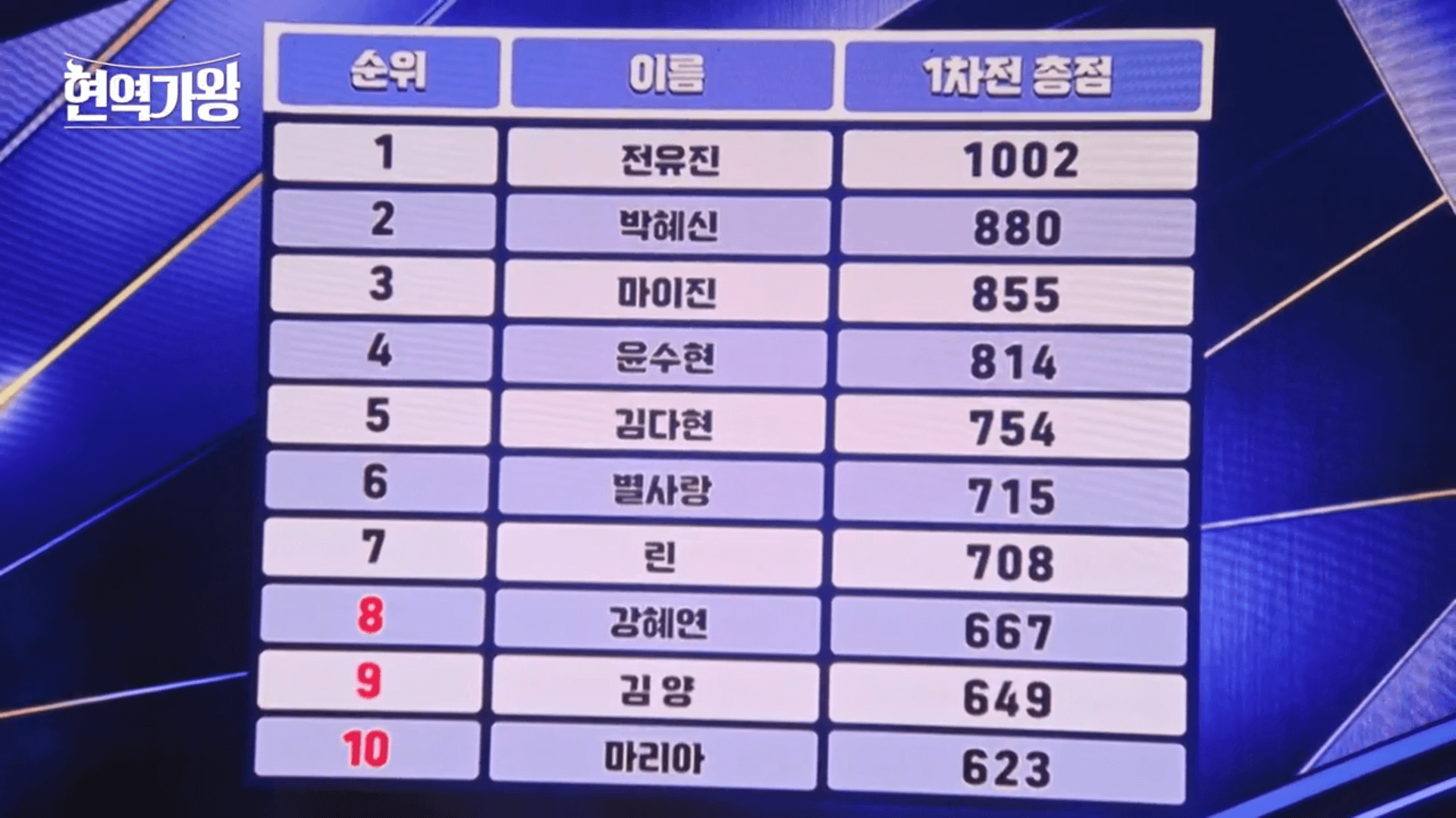 결승 진출 TOP10분들의 결승전 1라운드 점수와 순위를 알려드리겠습니다