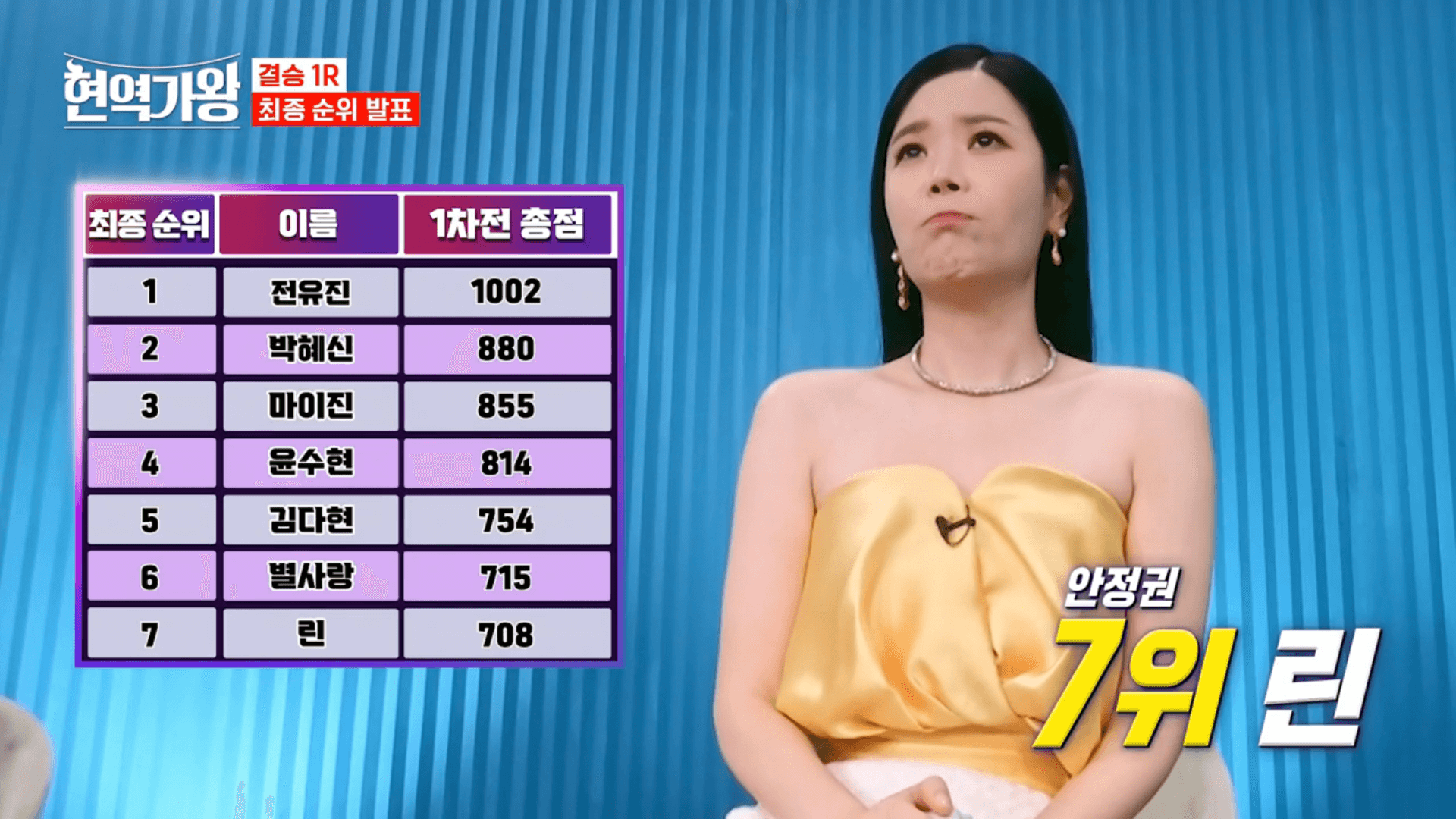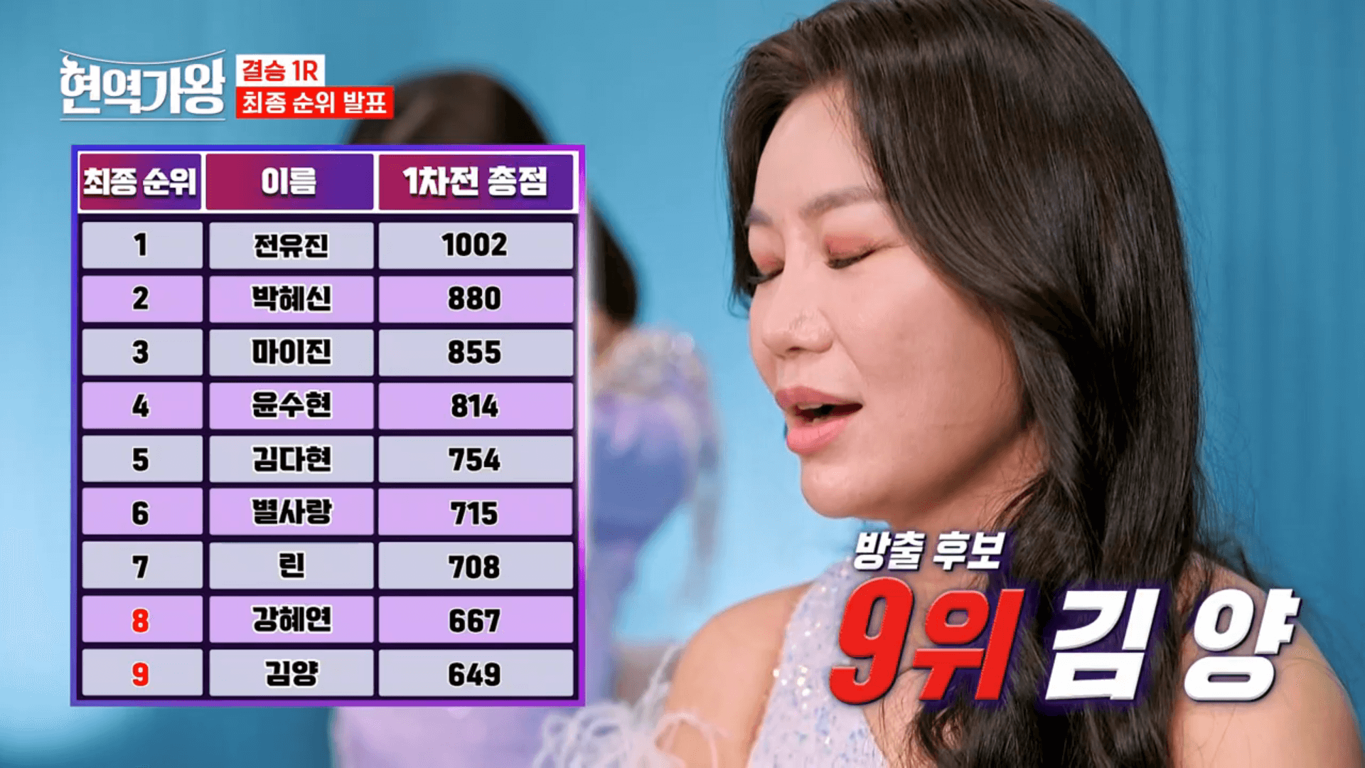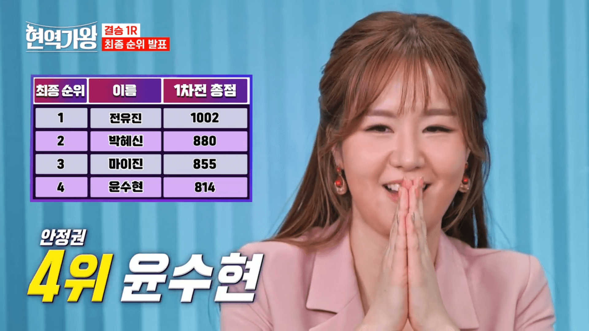 현역가왕 결승 1차전 순위와 총점 표입니다