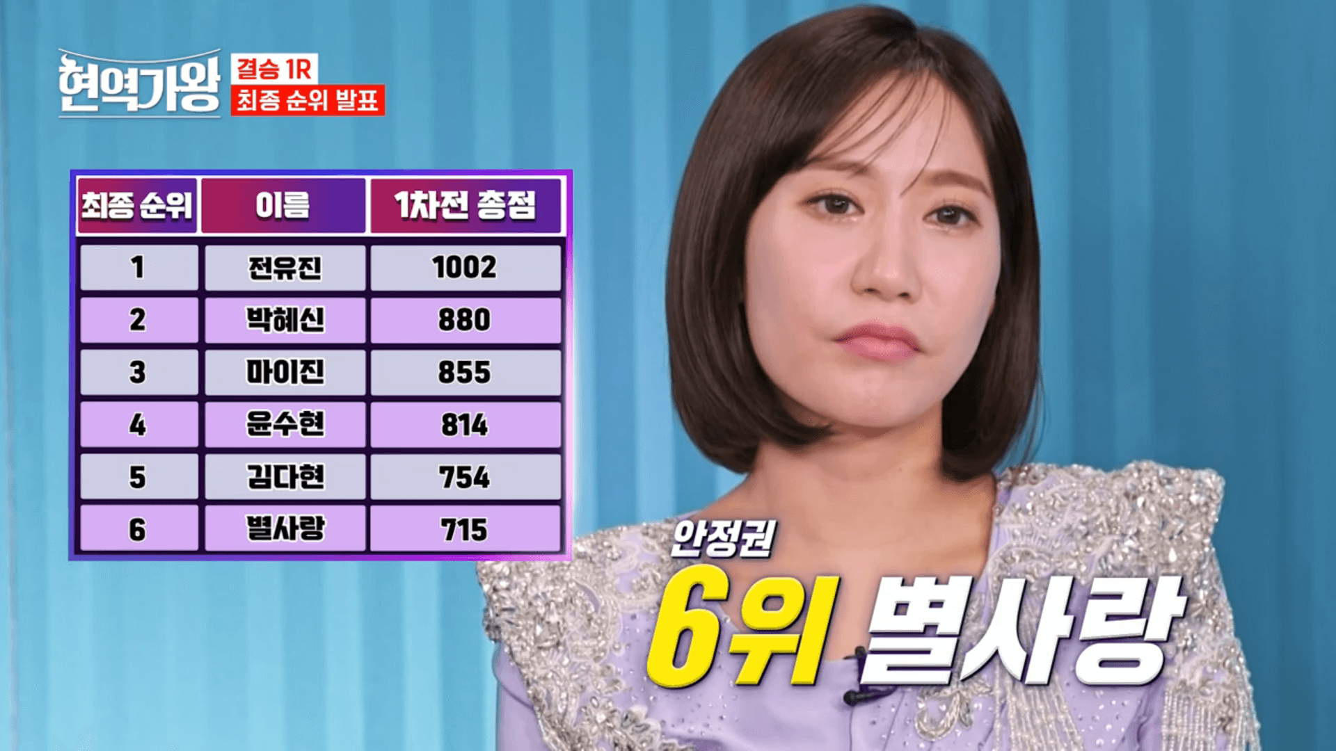 이번주 현역가왕 결승전 1라운드가 종료되었습니다