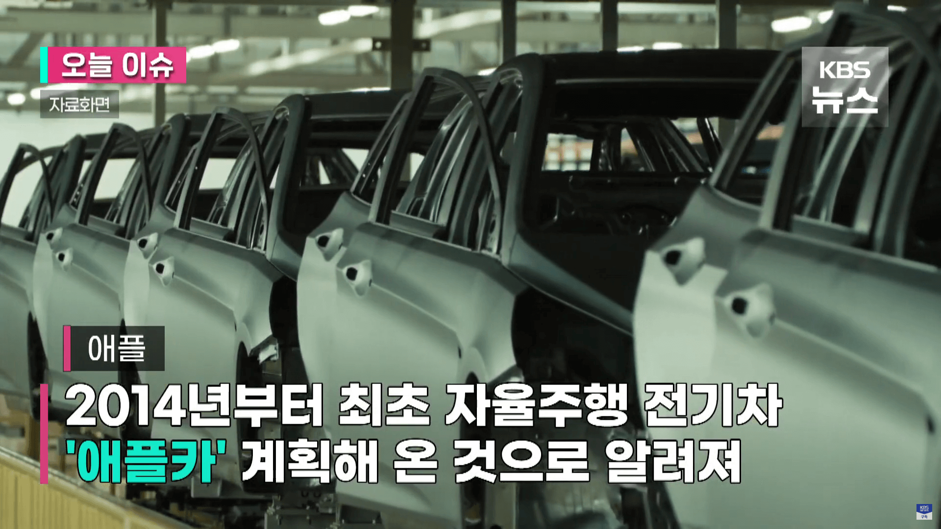 그래서 돈 벌면 애플 주식을 많이 사놔야겠다고 생각하고 있었는데 애플이 10년간 공들여 온 자율주행 전기차 '애플카' 개발을 포기한다는 소식을 오늘 KBS 뉴스를 보다가 알게 되었습니다