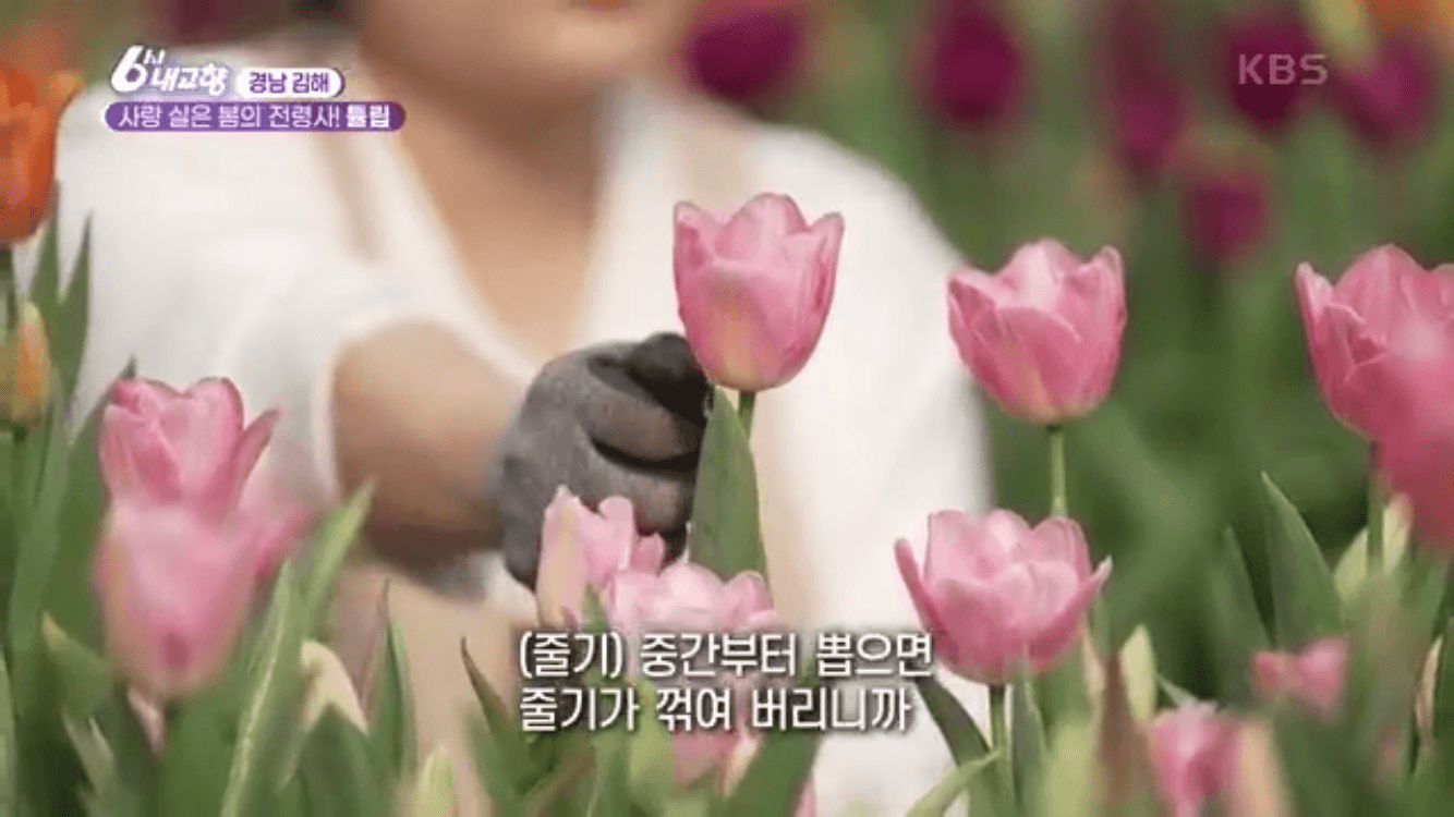 6시 내고향에 나온 경남 김해에 있는 한 화훼단지에는 봄을 알리는 예쁜 튤립 꽃이 피어있었습니다