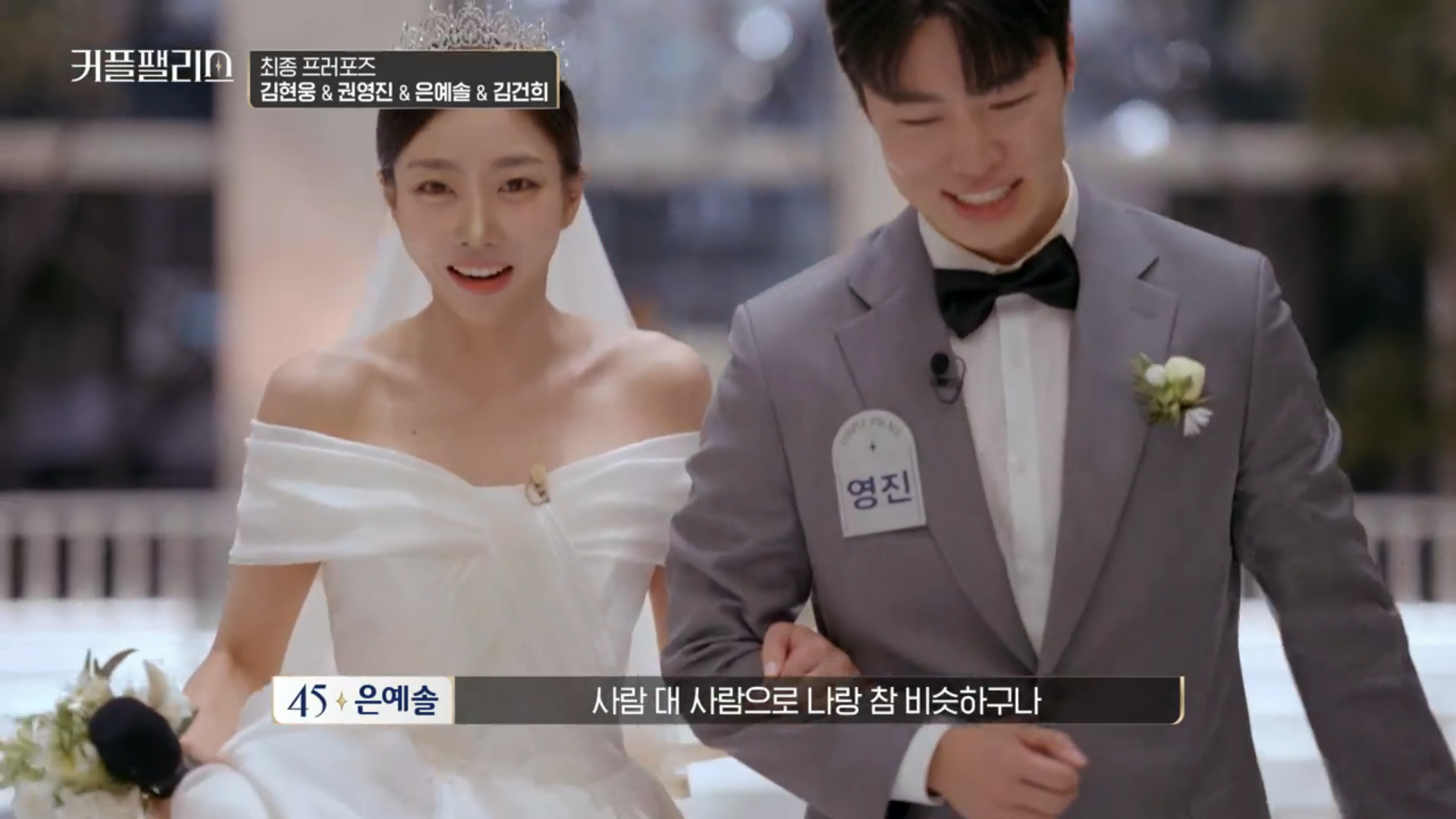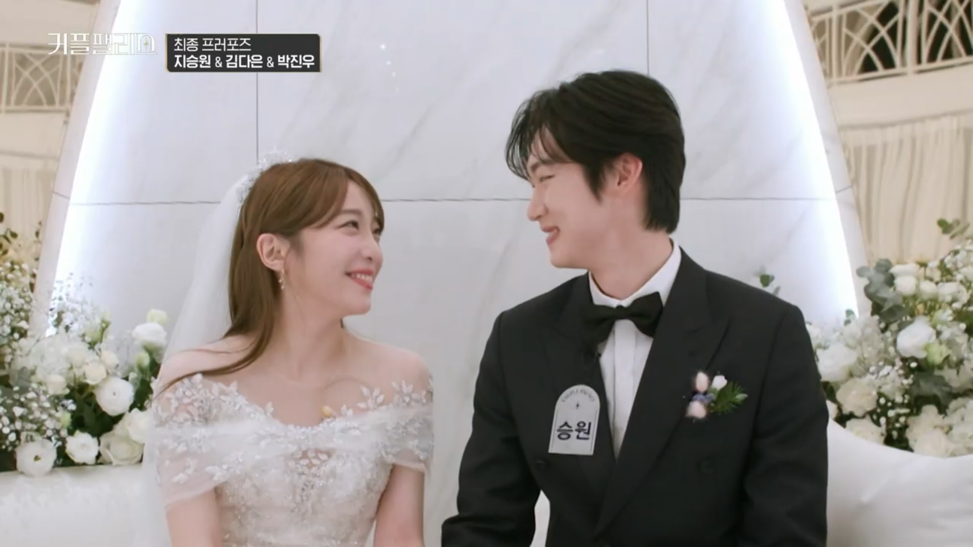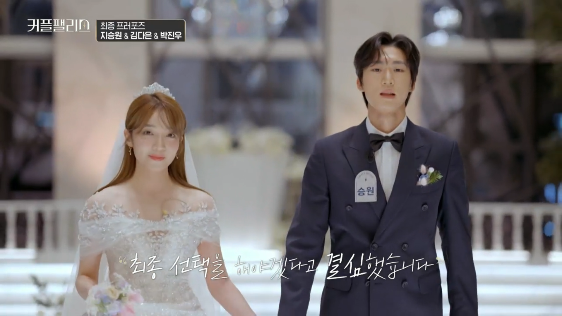 남자출연자분들은 턱시도를 여자출연자분들은 웨딩드레스를 입고 웨딩홀에서 많은 사람들 앞에서 최종 프러포즈를 하게 되었습니다