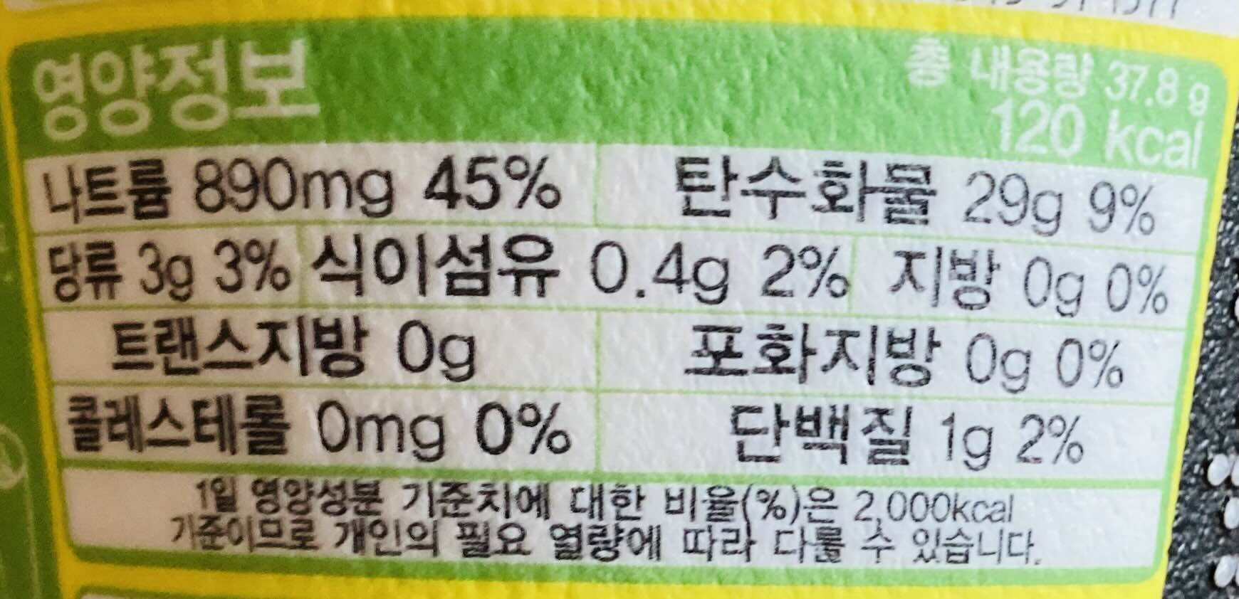 컵누들 매콤한 맛 하나의 열량은 120kcal입니다