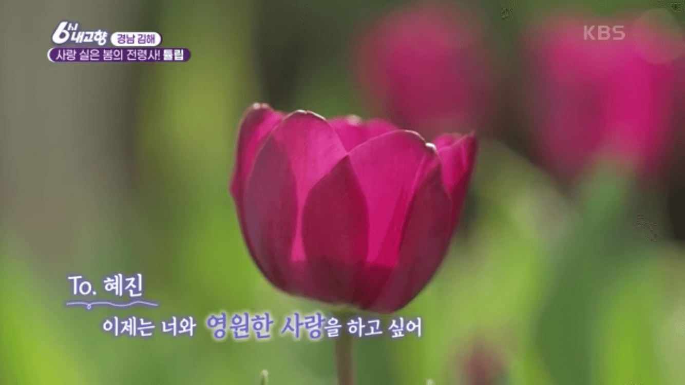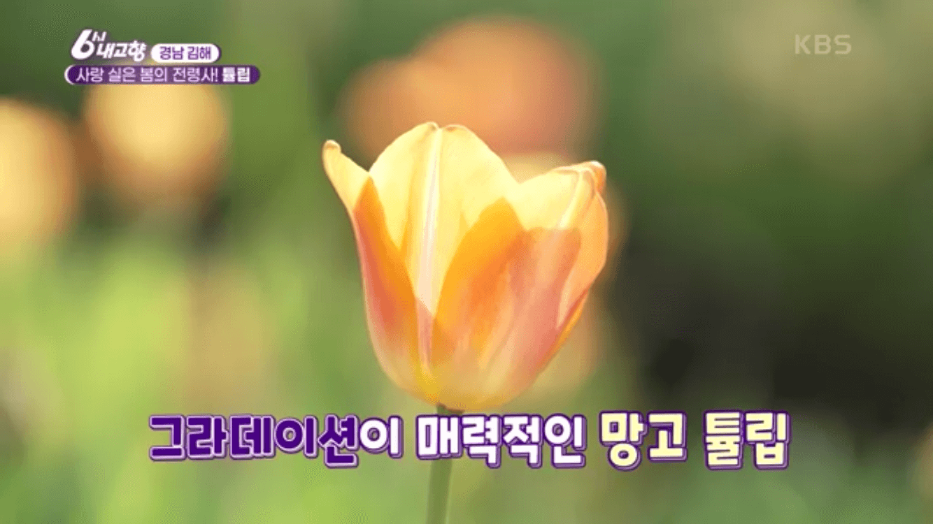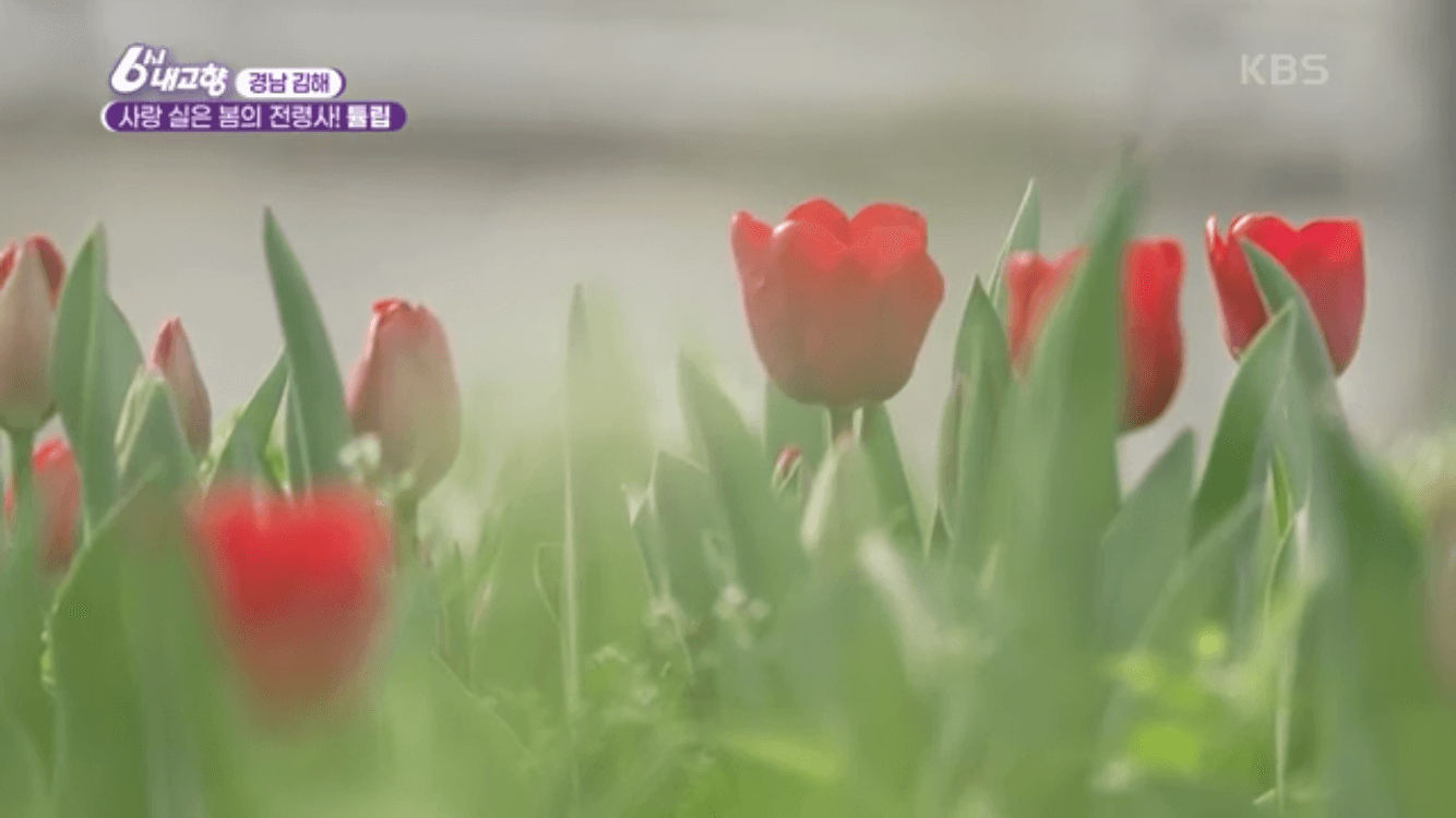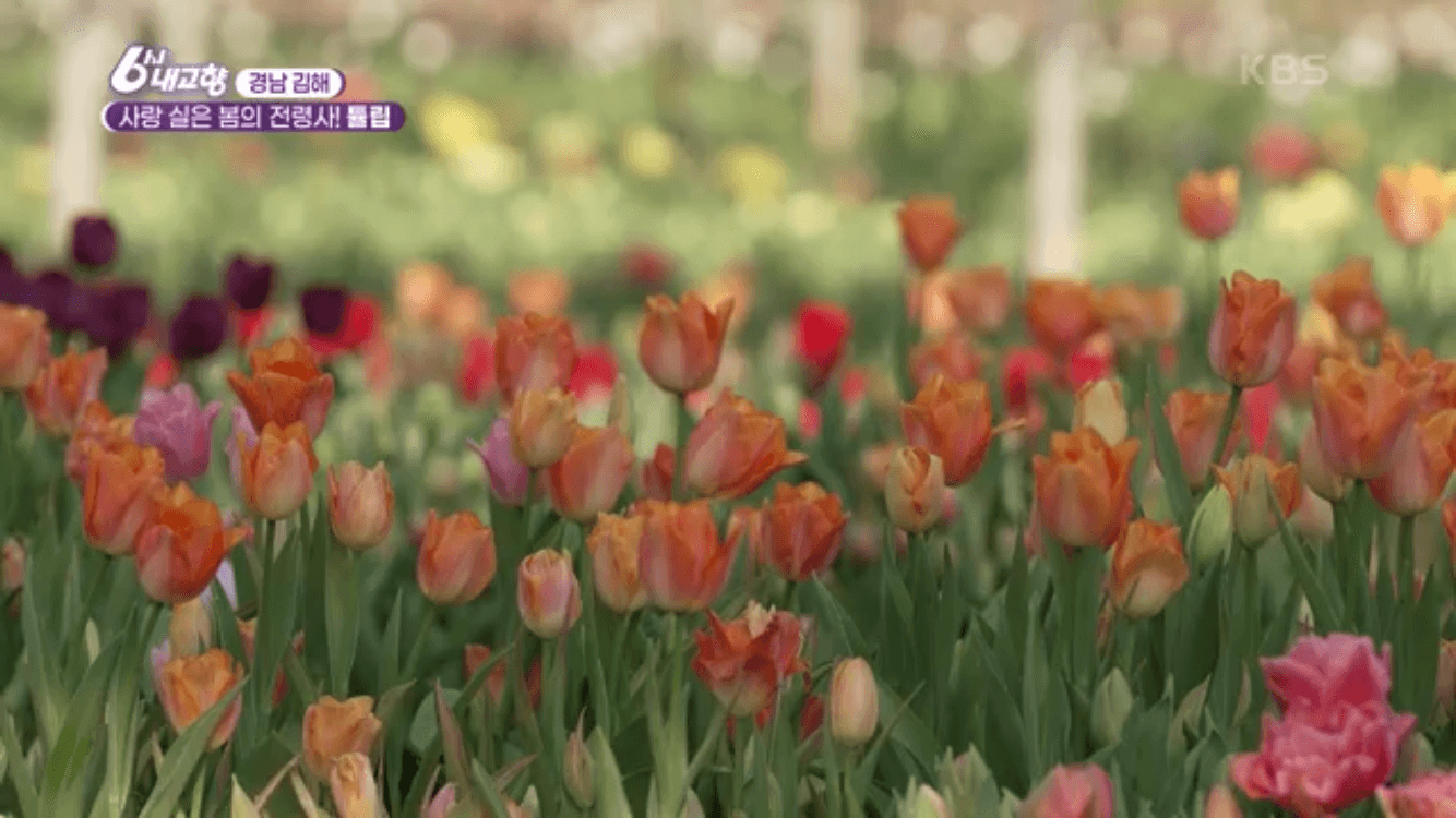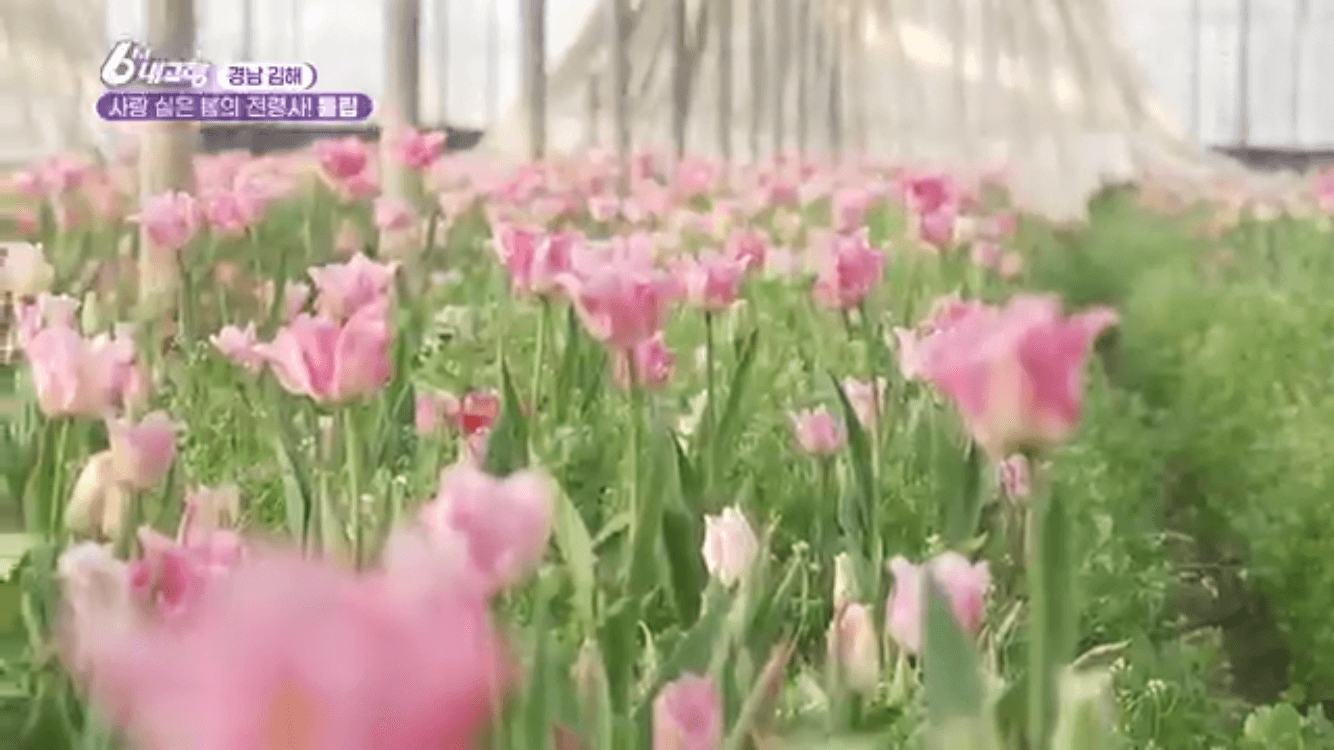 봄의 전령사 튤립은 다양한 색깔들이 있고 많은 사람들이 좋아하는 꽃입니다 튤립의 개화시기는 4~5월인데요 6시 내고향에 나온 경남 김해에 있는 한 화훼단지에는 봄을 알리는 예쁜 튤립 꽃이