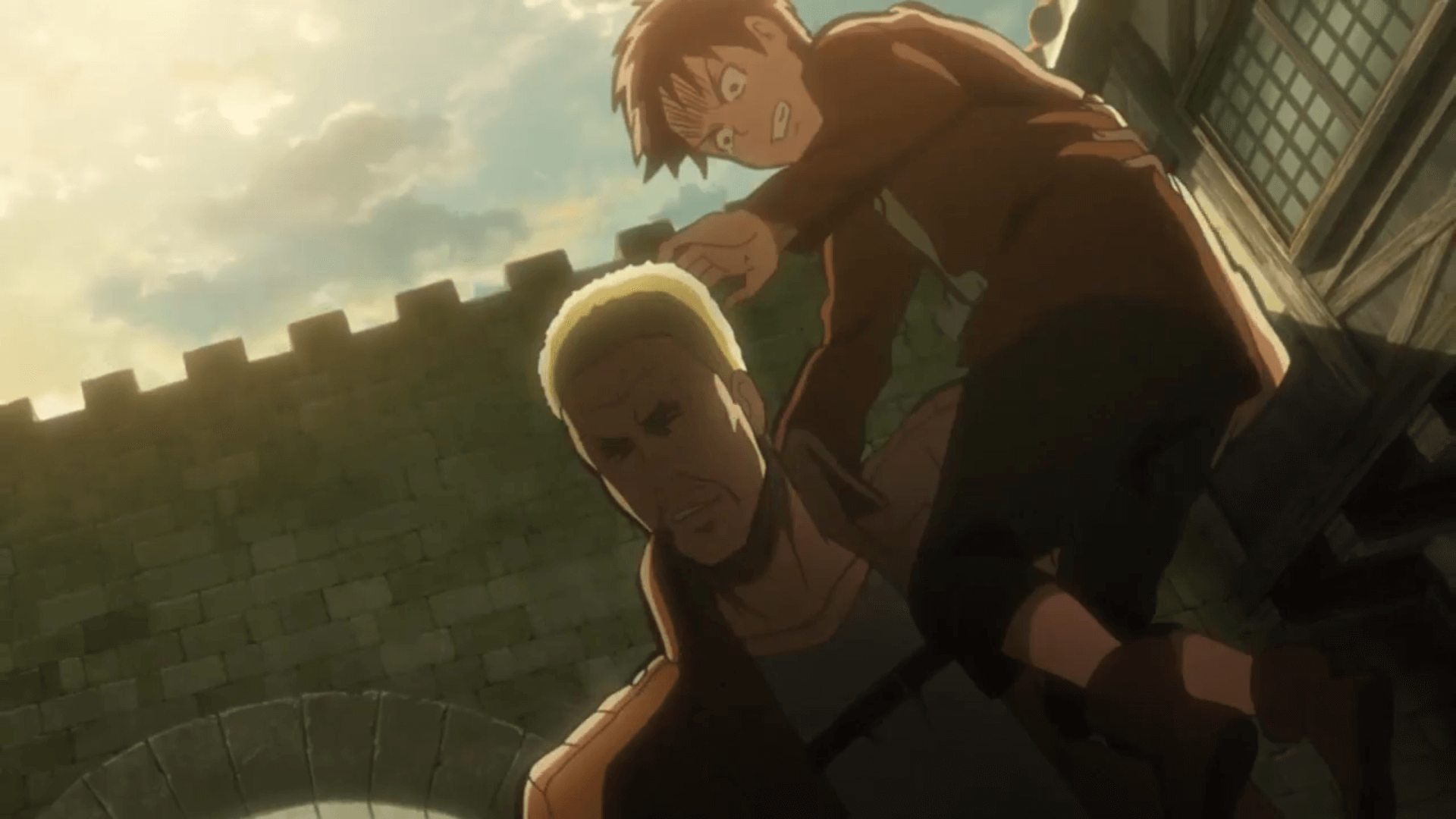 자신이 동경하는 조사병단을 욕하는 아저씨의 머리를 몽둥이로 내리치고 거인으로부터 자신과 미카사를 구해준 한네스 씨에게 한네스 때문에 엄마를 구할 수 없었다며 팔뒤꿈치로 머리를 가격하는 등 어린아이 치고 성깔 있는 모습을 보입니다