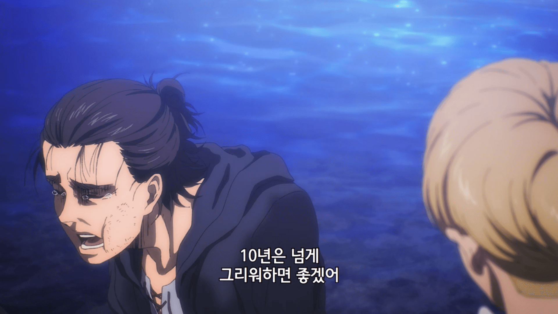 자신이 죽고도 한 10년은 넘게 미카사가 자신을 그리워하면 좋겠다