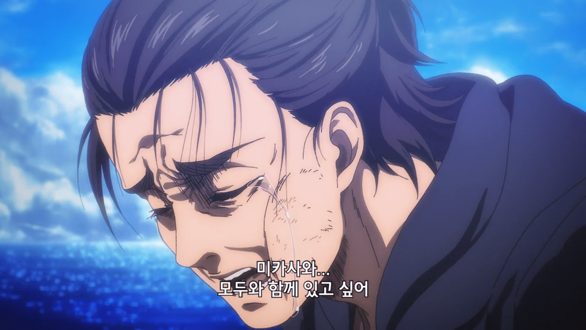 그리고 세월이 지나 미카사가 어떤 남자와 함께 엘런의 무덤을 찾아옵니다
