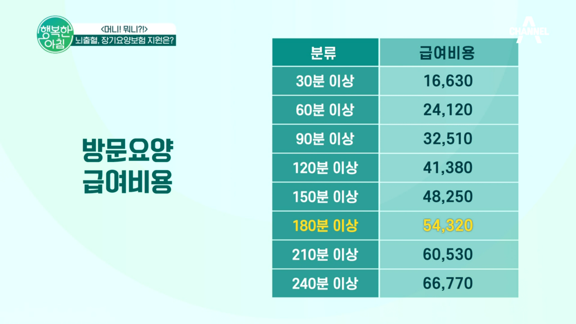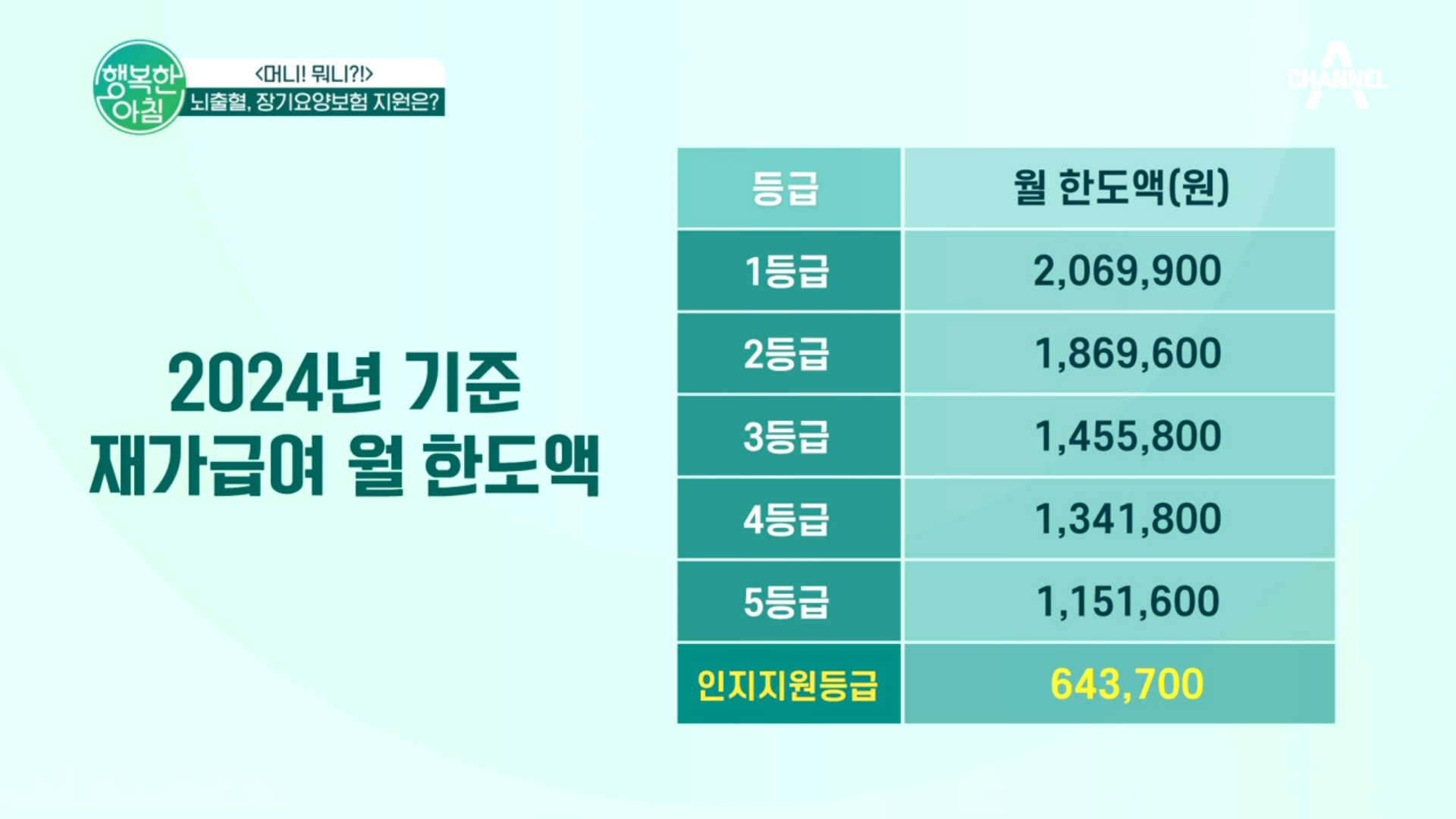 행복한 아침에 나온 올해 2024년 기준 재가급여 월 한도액을 알아보겠습니다