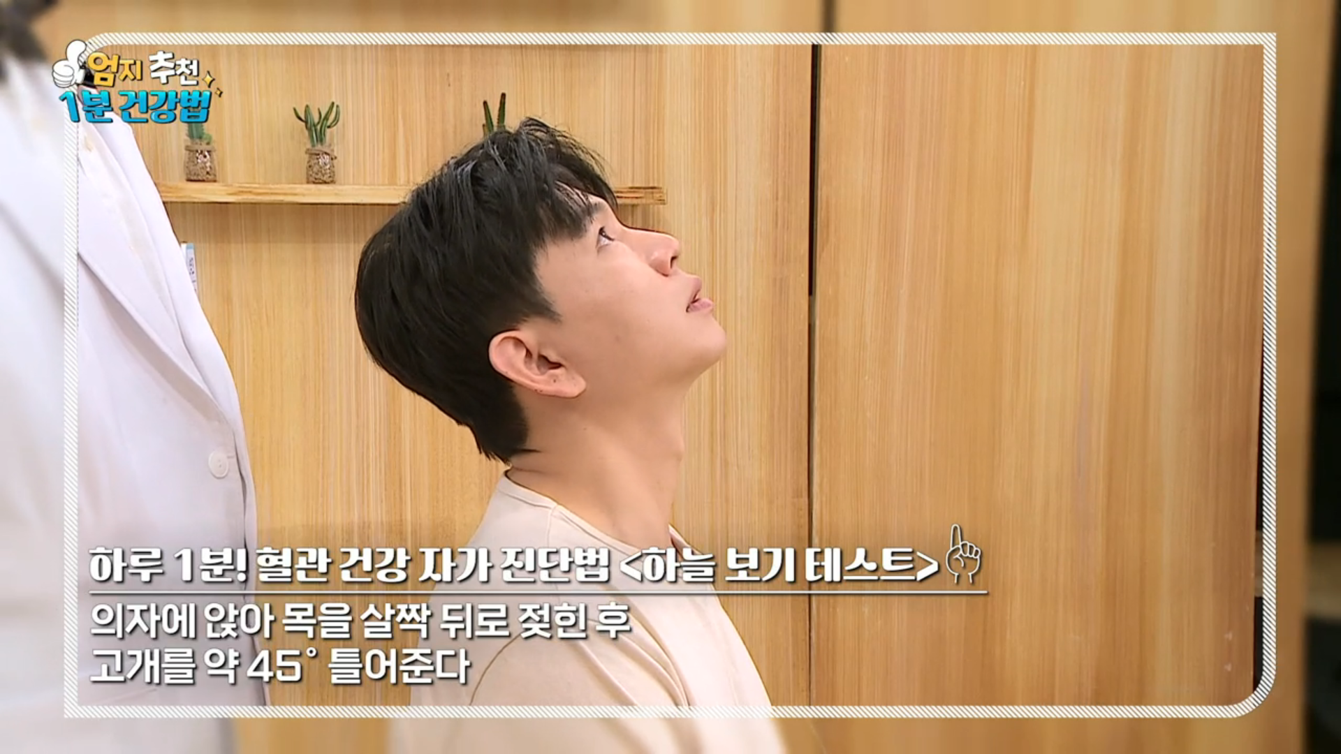 두 번째로 간단하게 혈관 건강을 체크할 수 있는 방법은 하늘 보기 테스트입니다