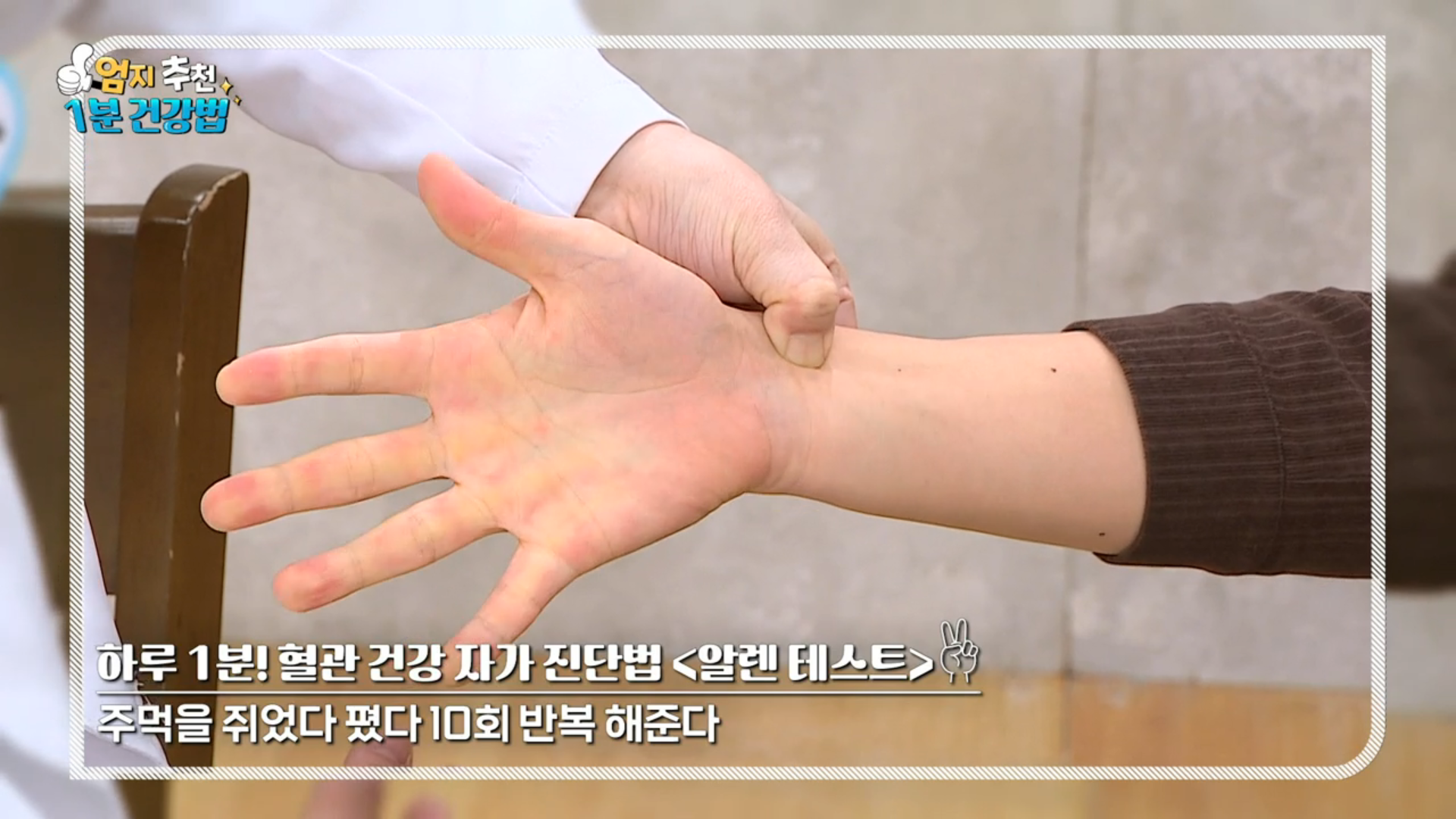 간단하게 혈관 건강을 체크할 수 있는 첫 번째 방법은 알렌 테스트입니다