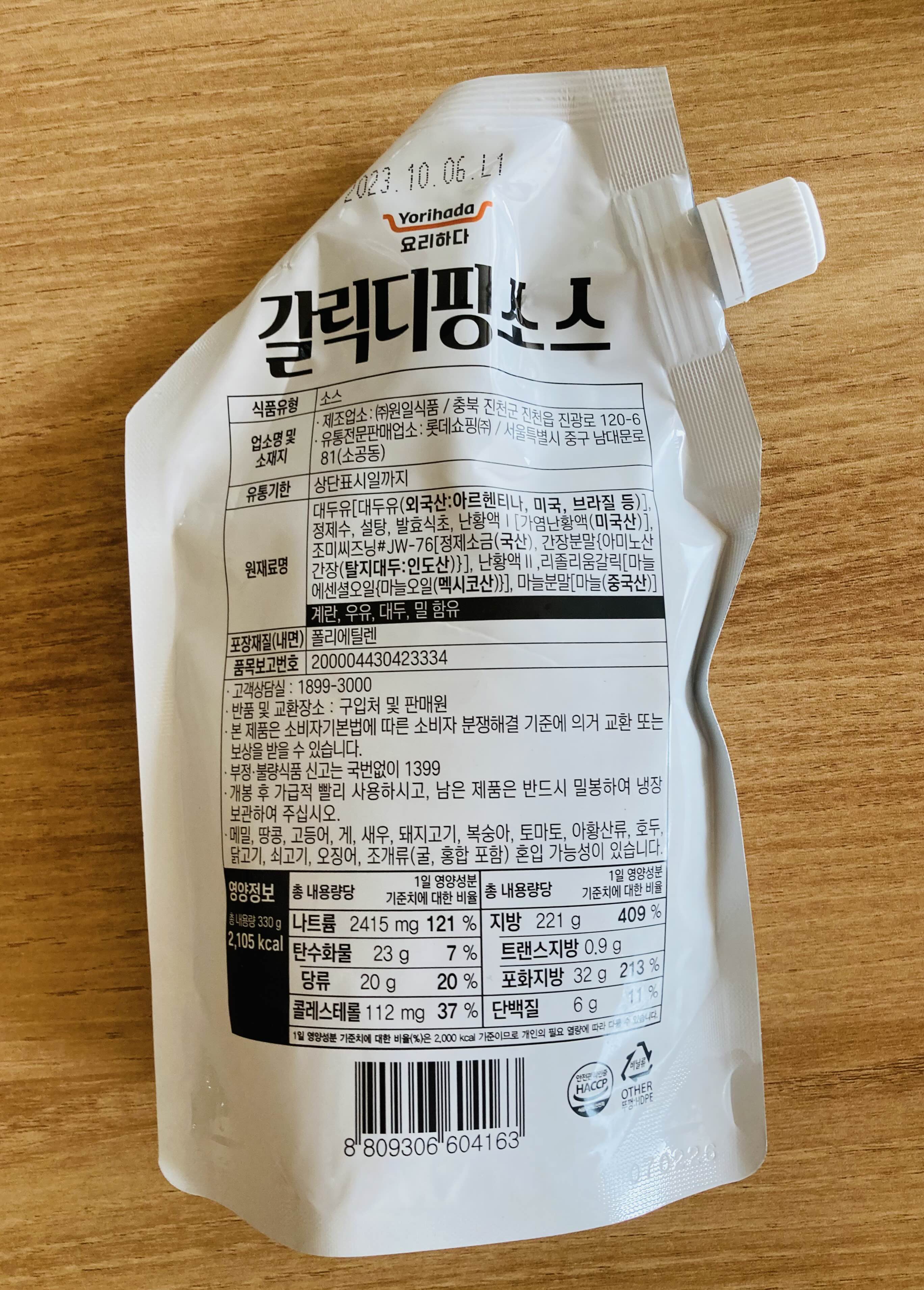 요리하다 갈릭디핑소스의 제품 정보입니다
