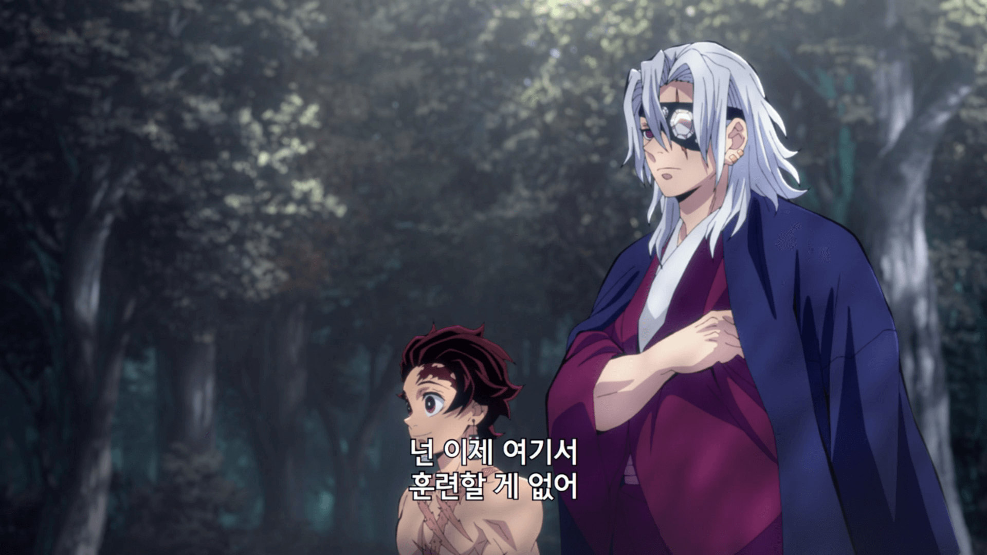 우즈이 텐겐은 탄지로에게 넌 이제 여기서 훈련할 게 없으니 다음 단계로 가라고 합니다