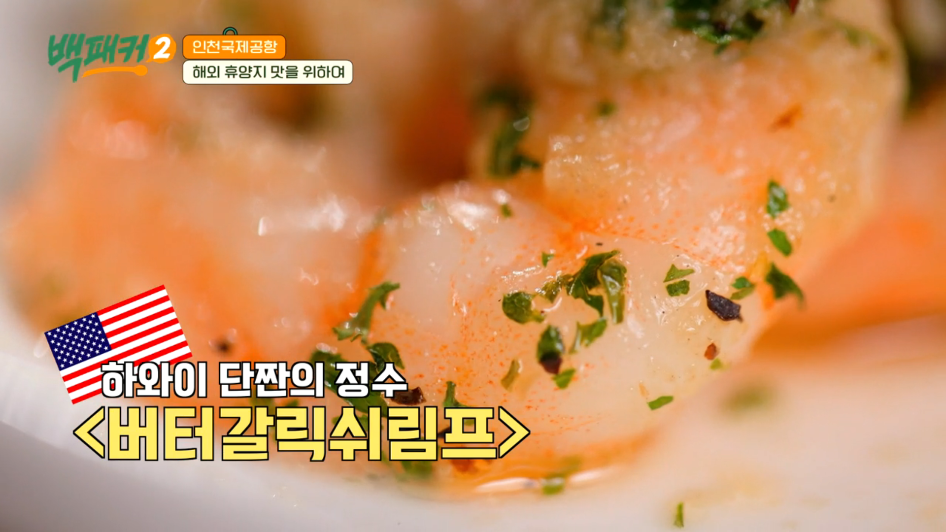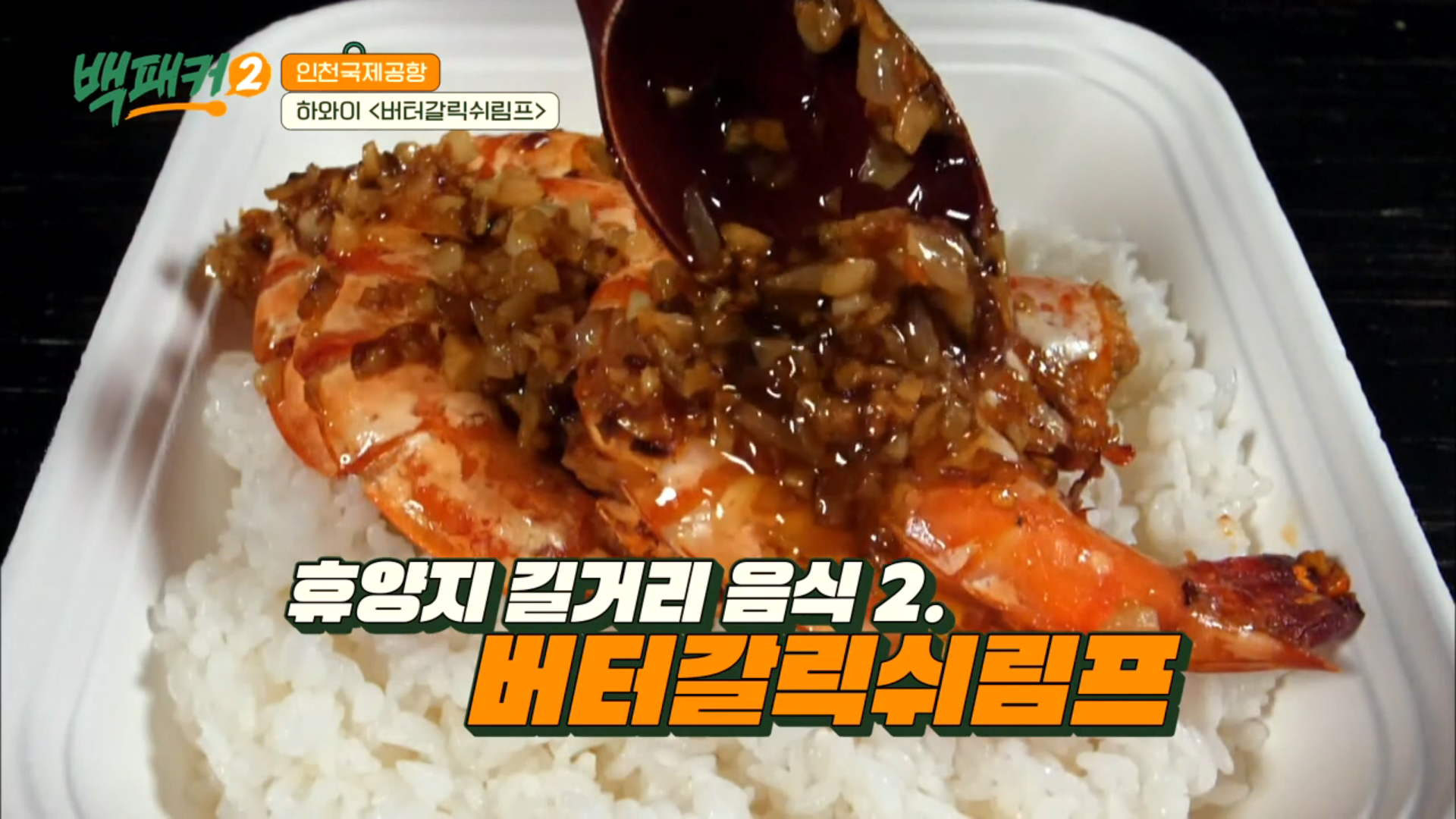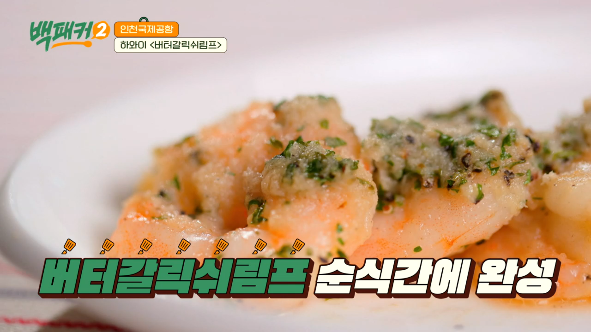 백패커 시즌2 7화에는 인천국제공항 직원 식당에서 해외 휴양지 맛을 내기 위하여 하와이 길거리 푸드트럭에서 만날 수 있는 버터갈릭 쉬림프를 메뉴로 선정했는데요
