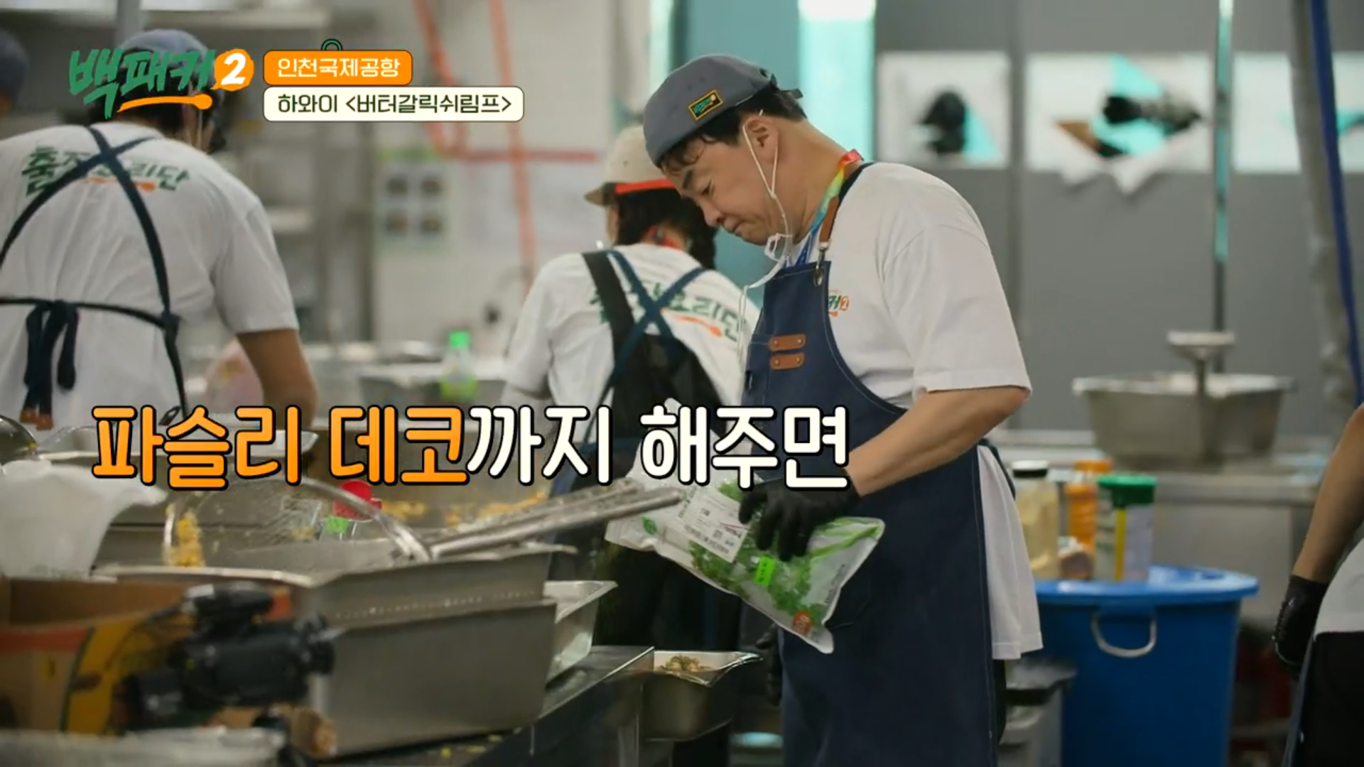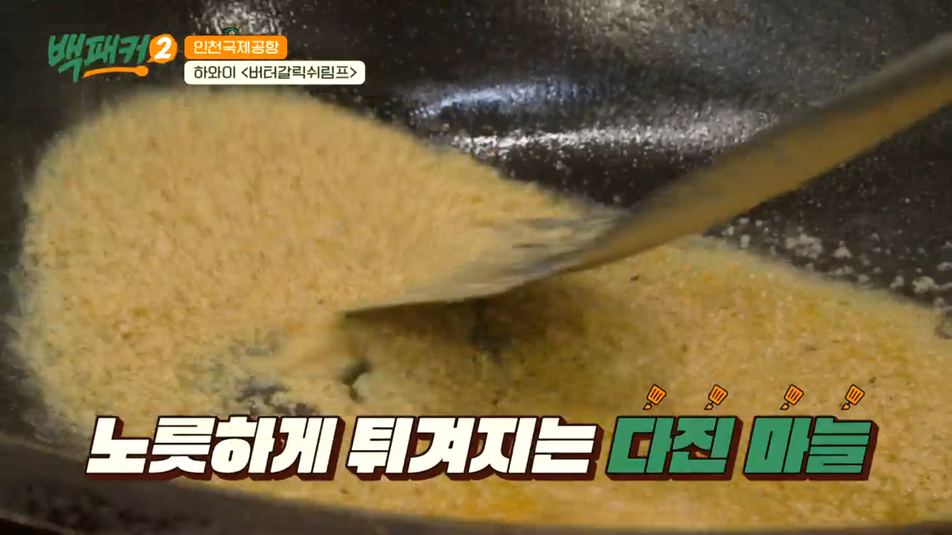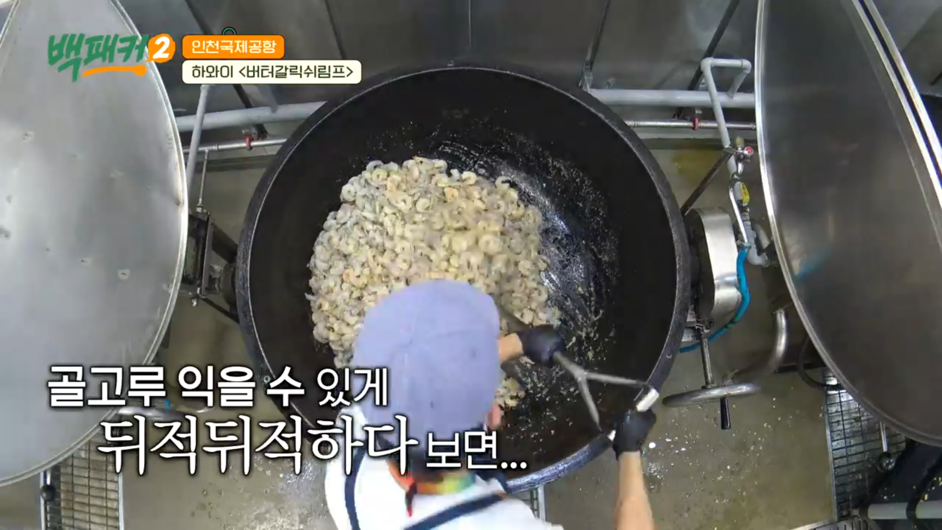 백패커 시즌2 7화에는 인천국제공항 직원 식당에서 해외 휴양지 맛을 내기 위하여 하와이 길거리 푸드트럭에서 만날 수 있는 버터갈릭 쉬림프를 메뉴로 선정했는데요