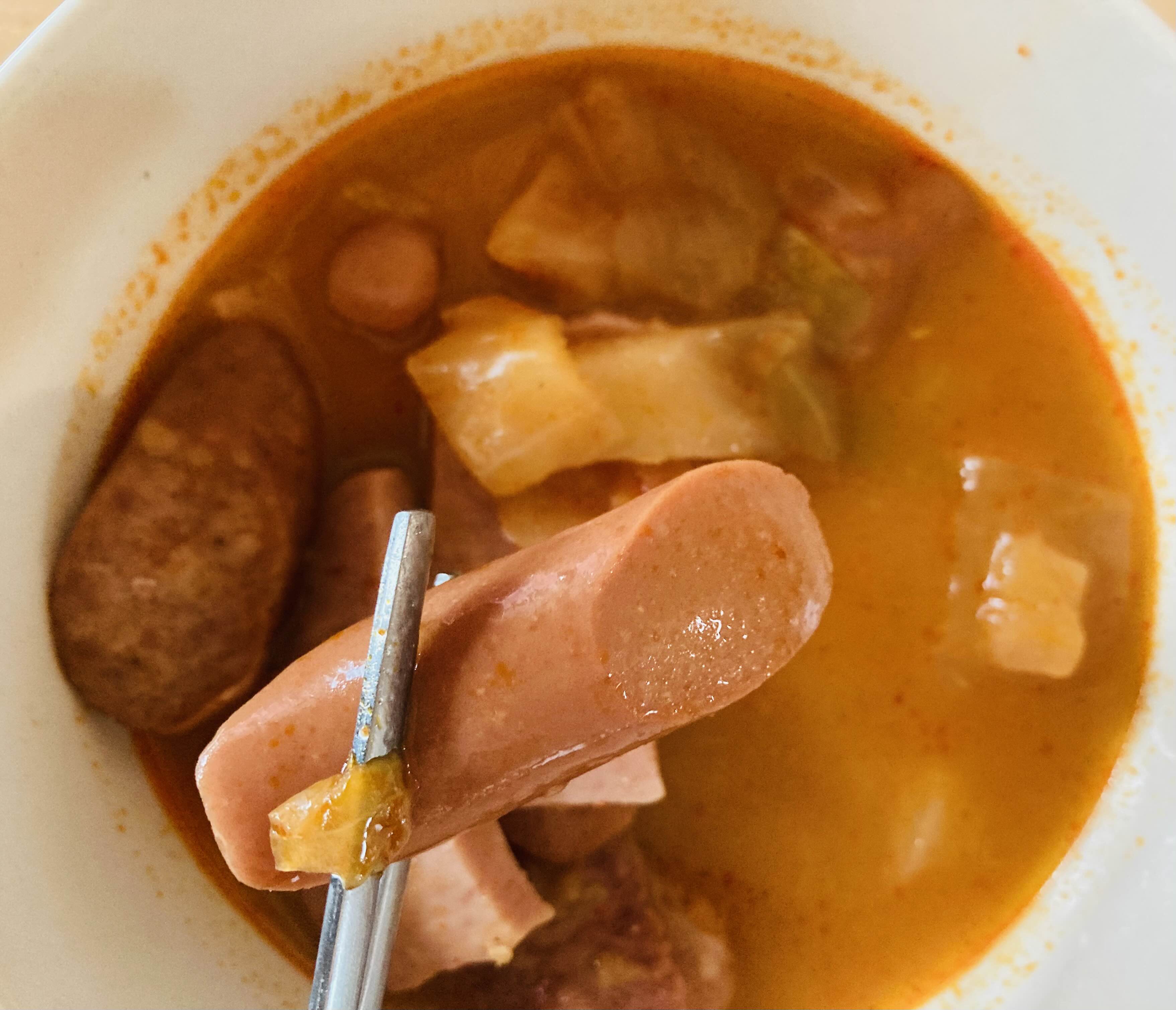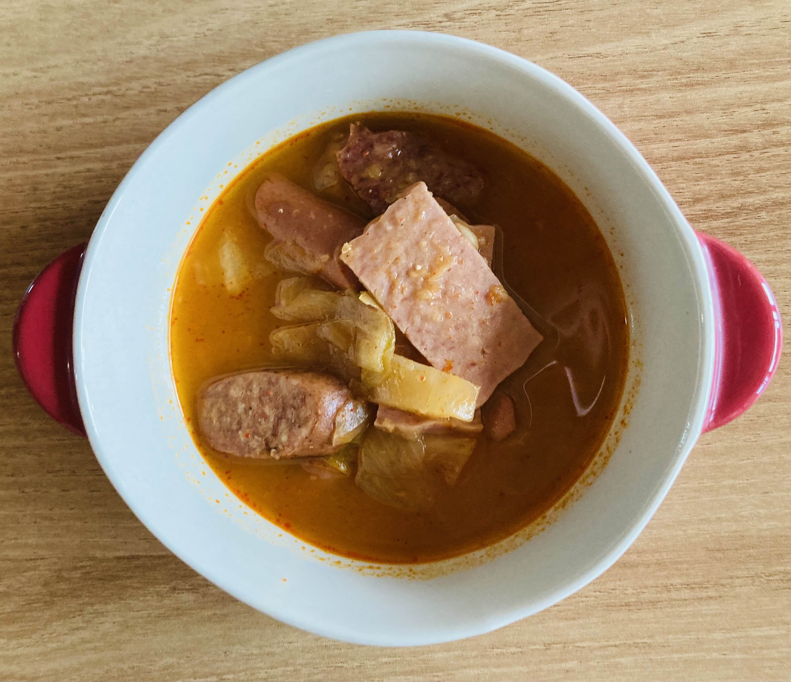 야채는 적은 편이고 소시지 양은 괜찮으나 부족하다면 집에 있는 스팸이나 다른 햄종류를 추가해서 드셔도 괜찮을 것 같습니다