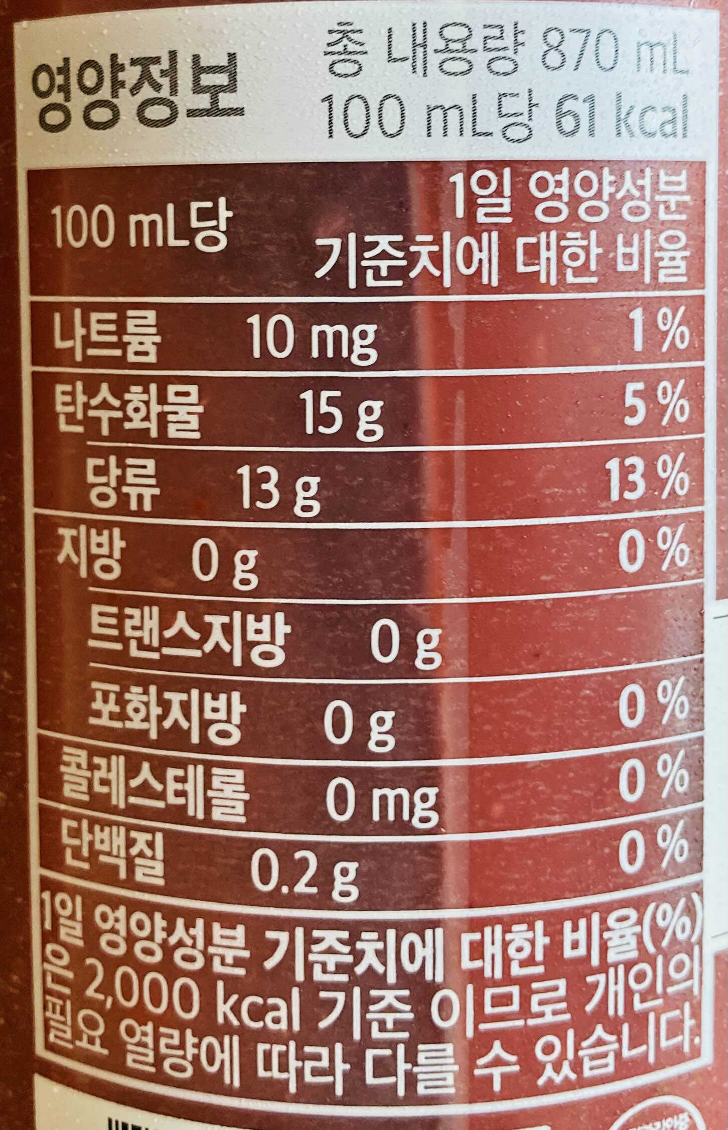 총 내용량 870mL 중 100mL당 칼로리는 61kcal입니다