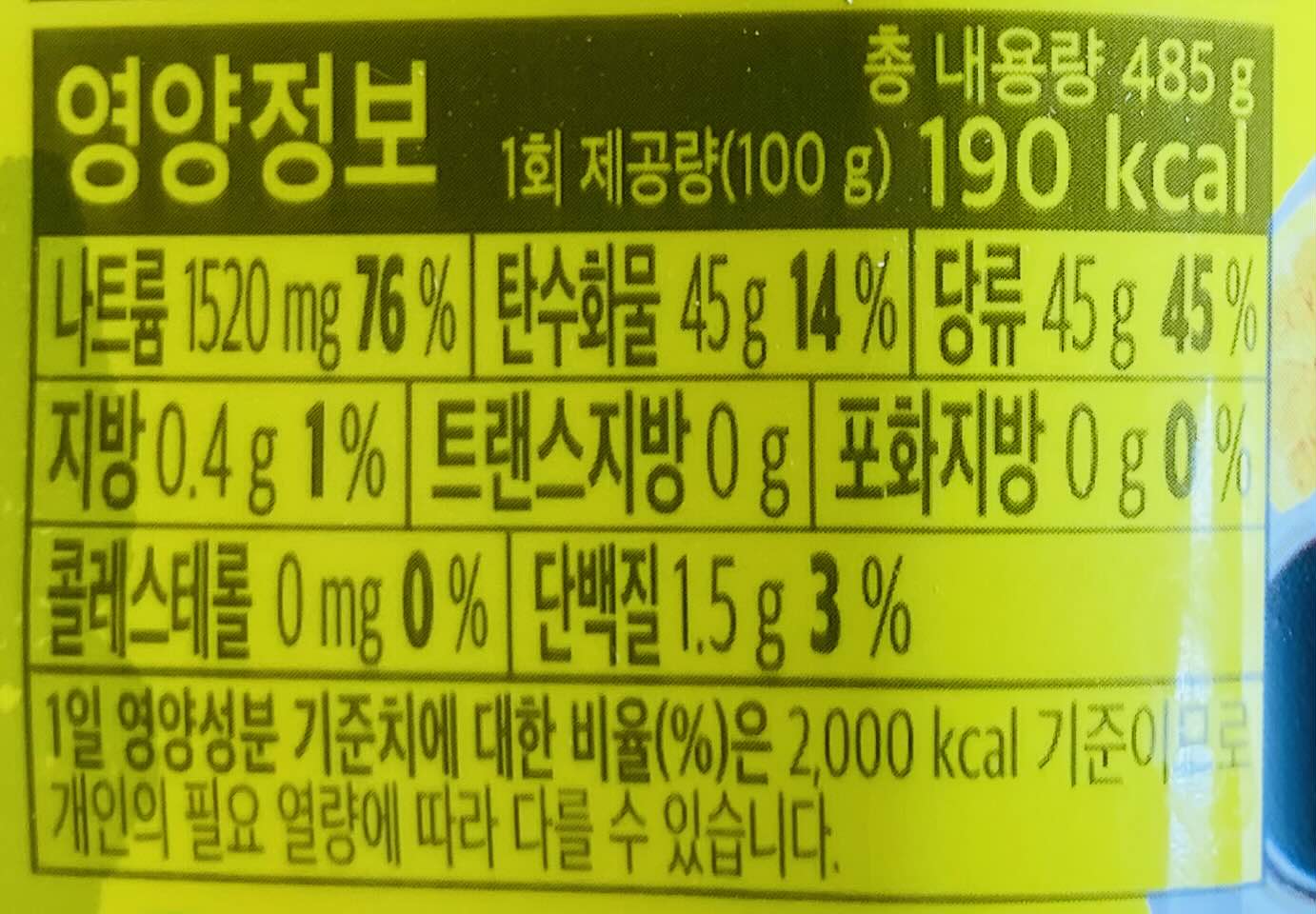 용량은 485g입니다