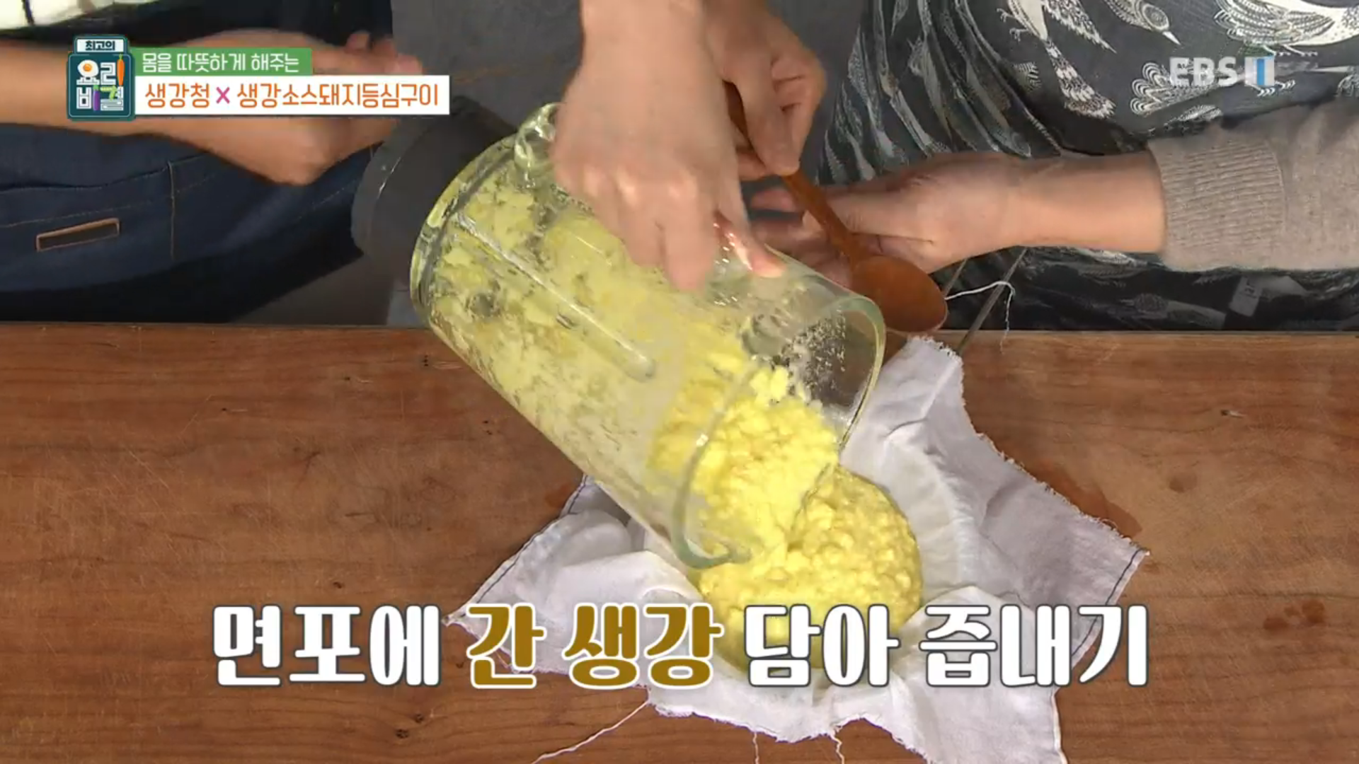 이렇게 간 생강은 즙을 짜서 전분을 제거해야 텁텁함이 사라진다고 합니다
