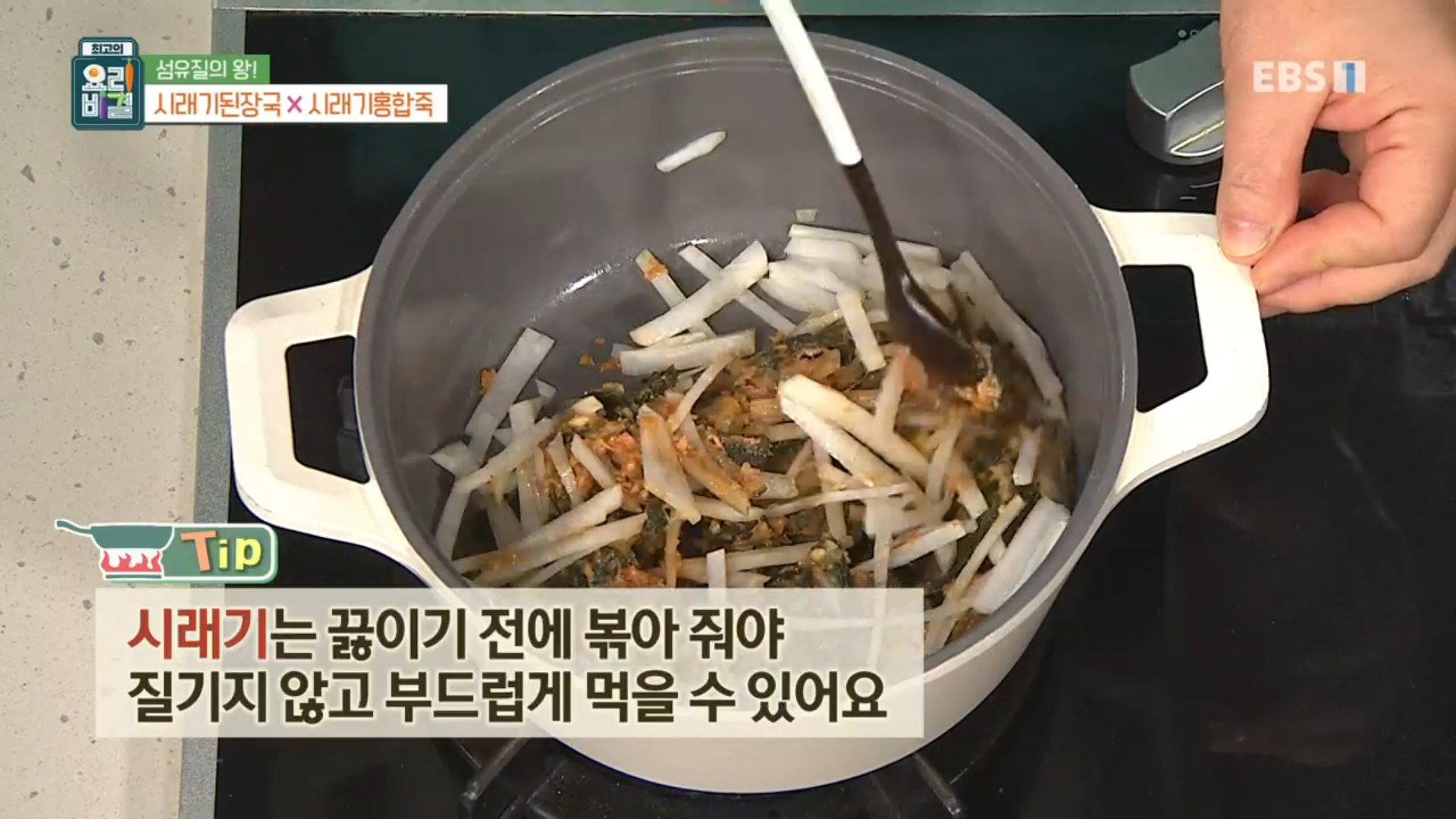 시래기는 끓이기 전에 볶아줘야 질기지 않고 부드럽게 먹을 수 있다고 합니다