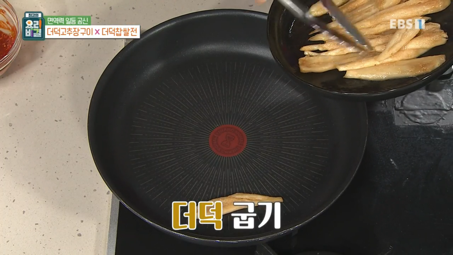 팬에 밑간을 해준 더덕을 구워줍니다