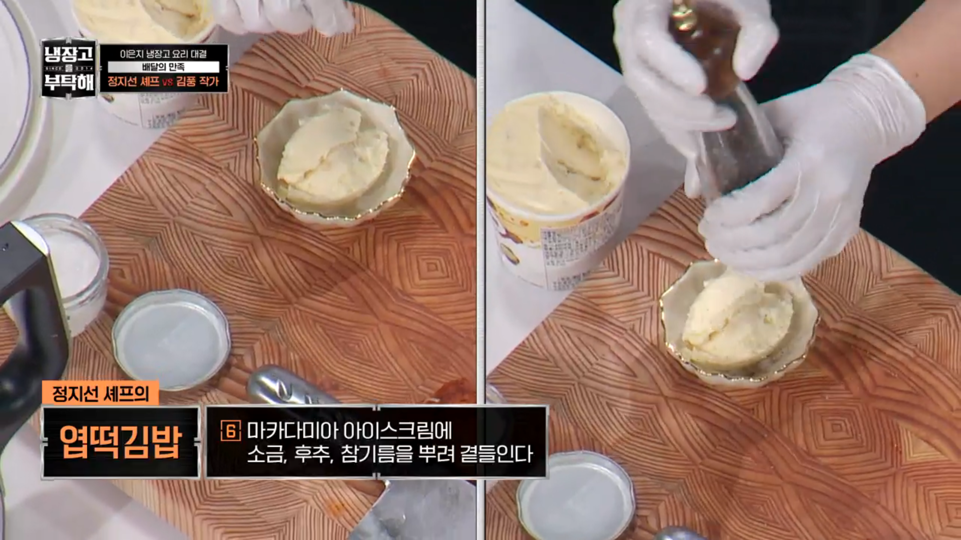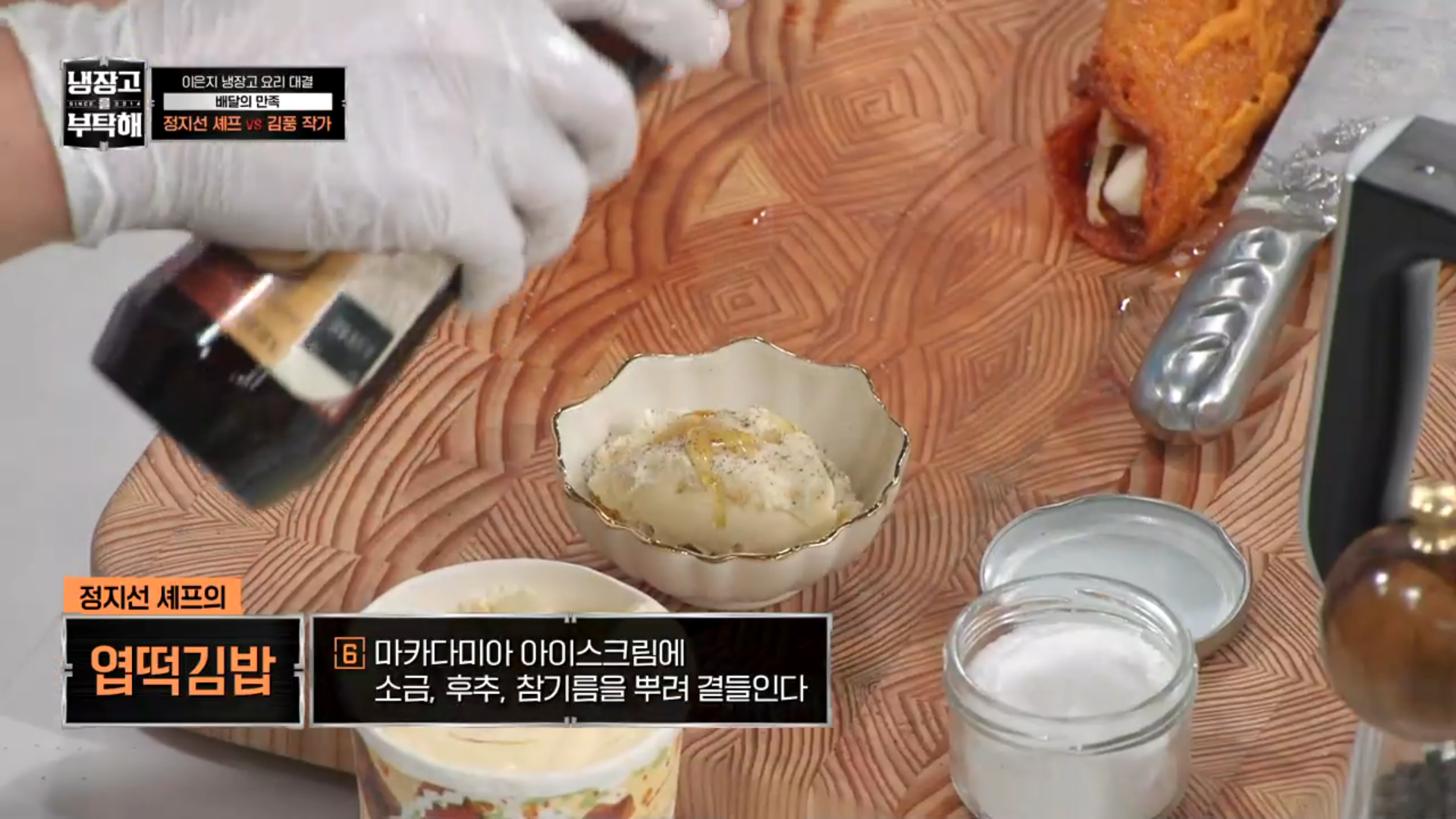 아이스크림 위에 소금, 후추, 참기름을 뿌려줍니다
