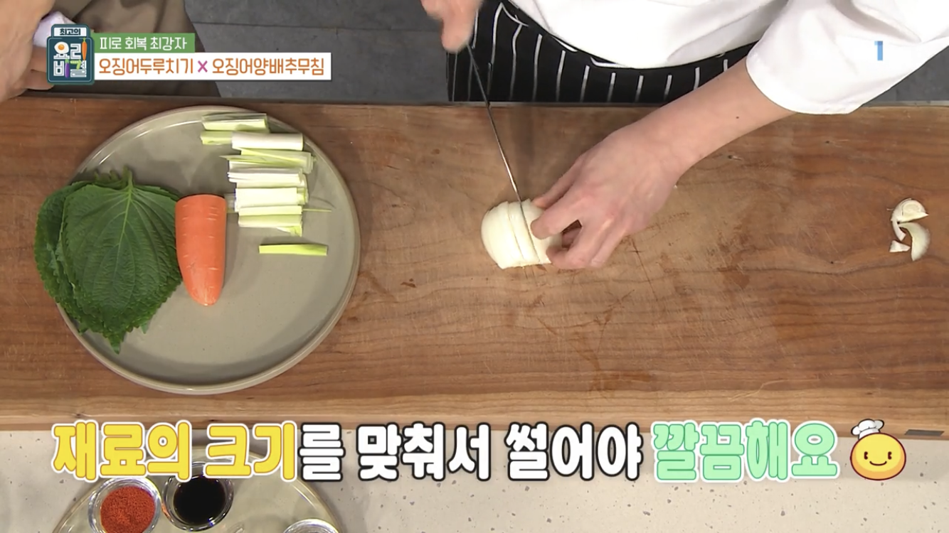 재료의 크기에 맞춰 썰어주면 요리가 완성됐을 때 더 깔끔해 보인다고 합니다