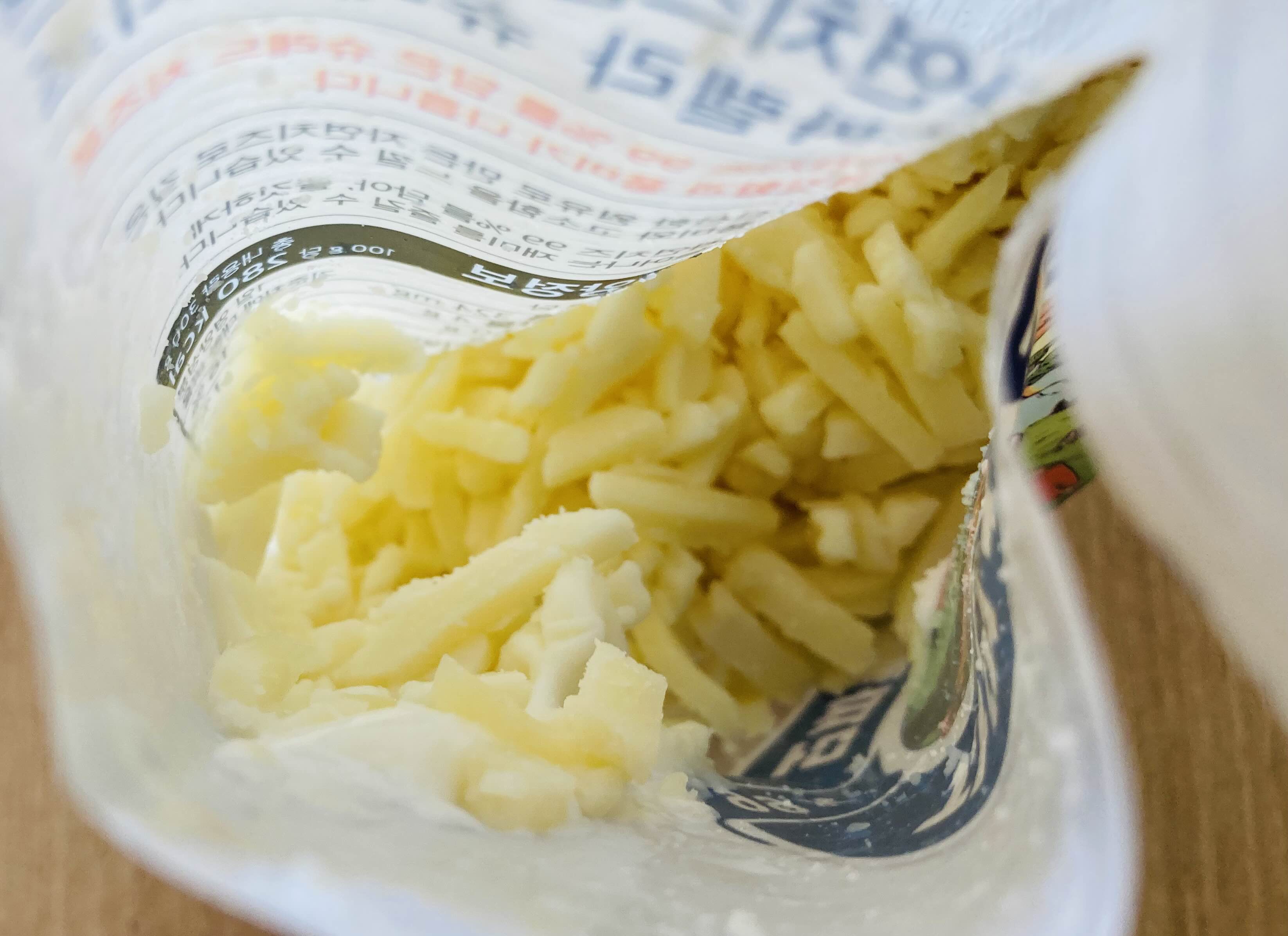 남은 모짜렐라 슈레드 치즈는 바로 냉동실에 넣었습니다