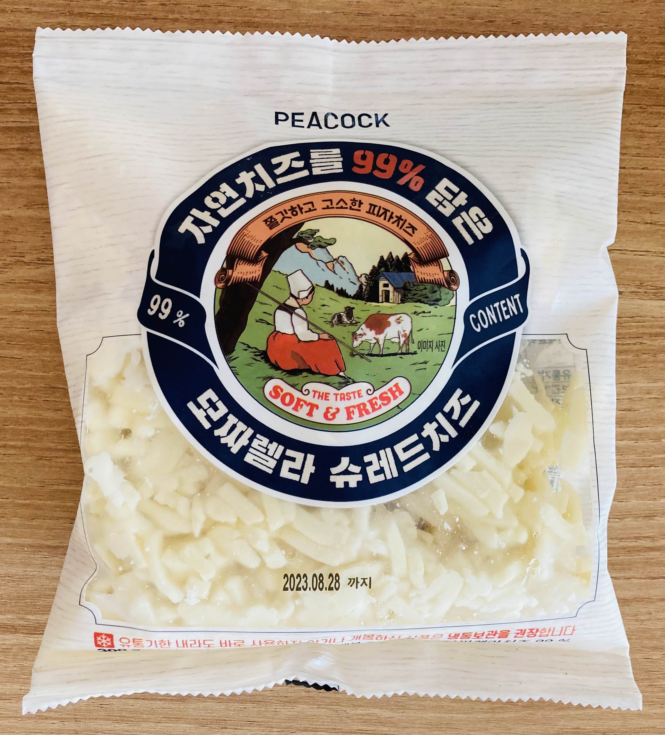 피코크 자연치즈를 99% 담은 모짜렐라 슈레드 치즈입니다