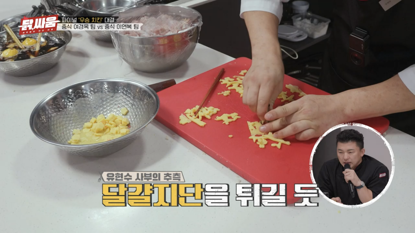닭싸움 결승전에서 왕병호 셰프님이 만드신 사이드 메뉴 달걀 맛탕입니다