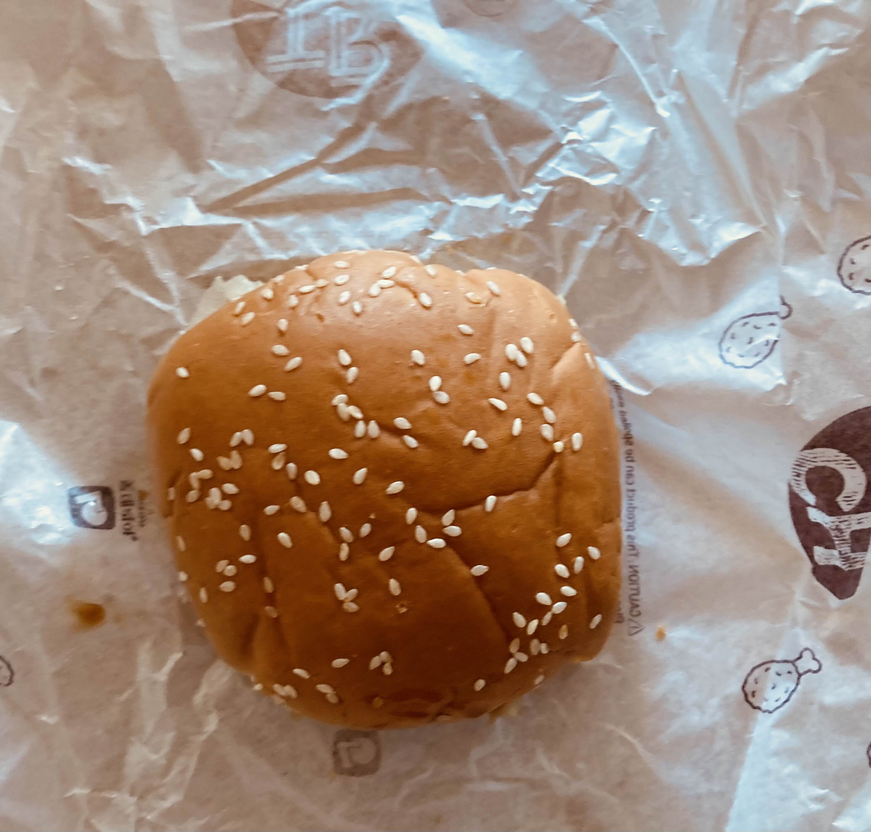 롯데리아 치킨버거의 빵은 위에 통깨가 박혀 맛있어 보입니다