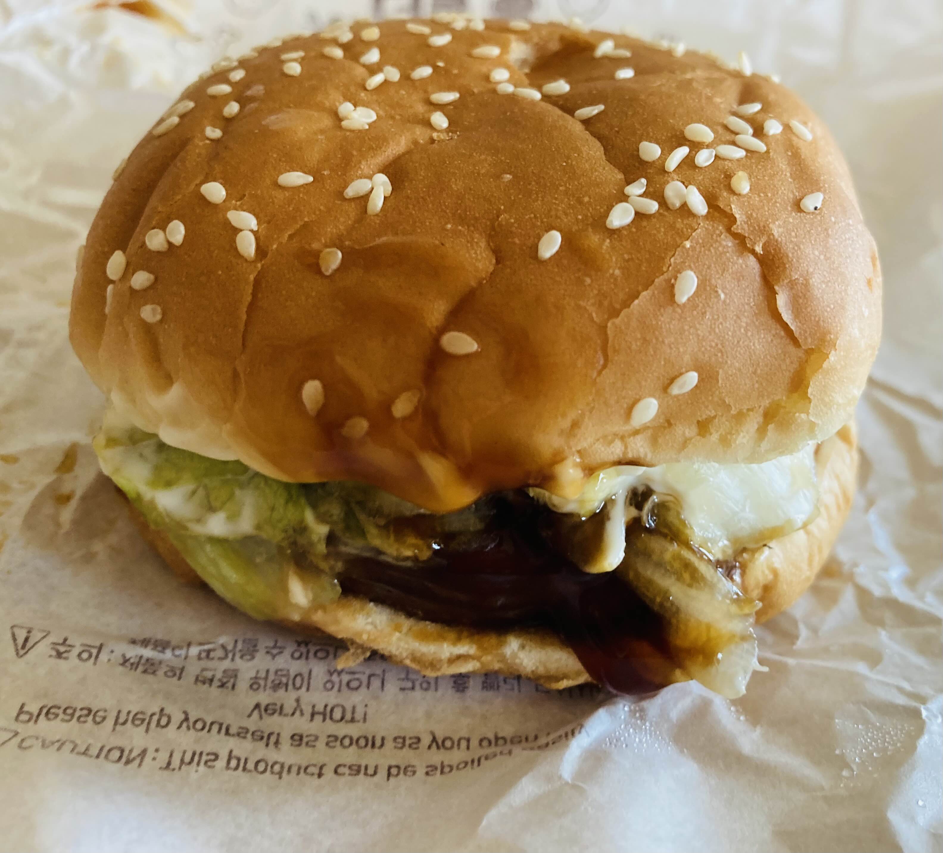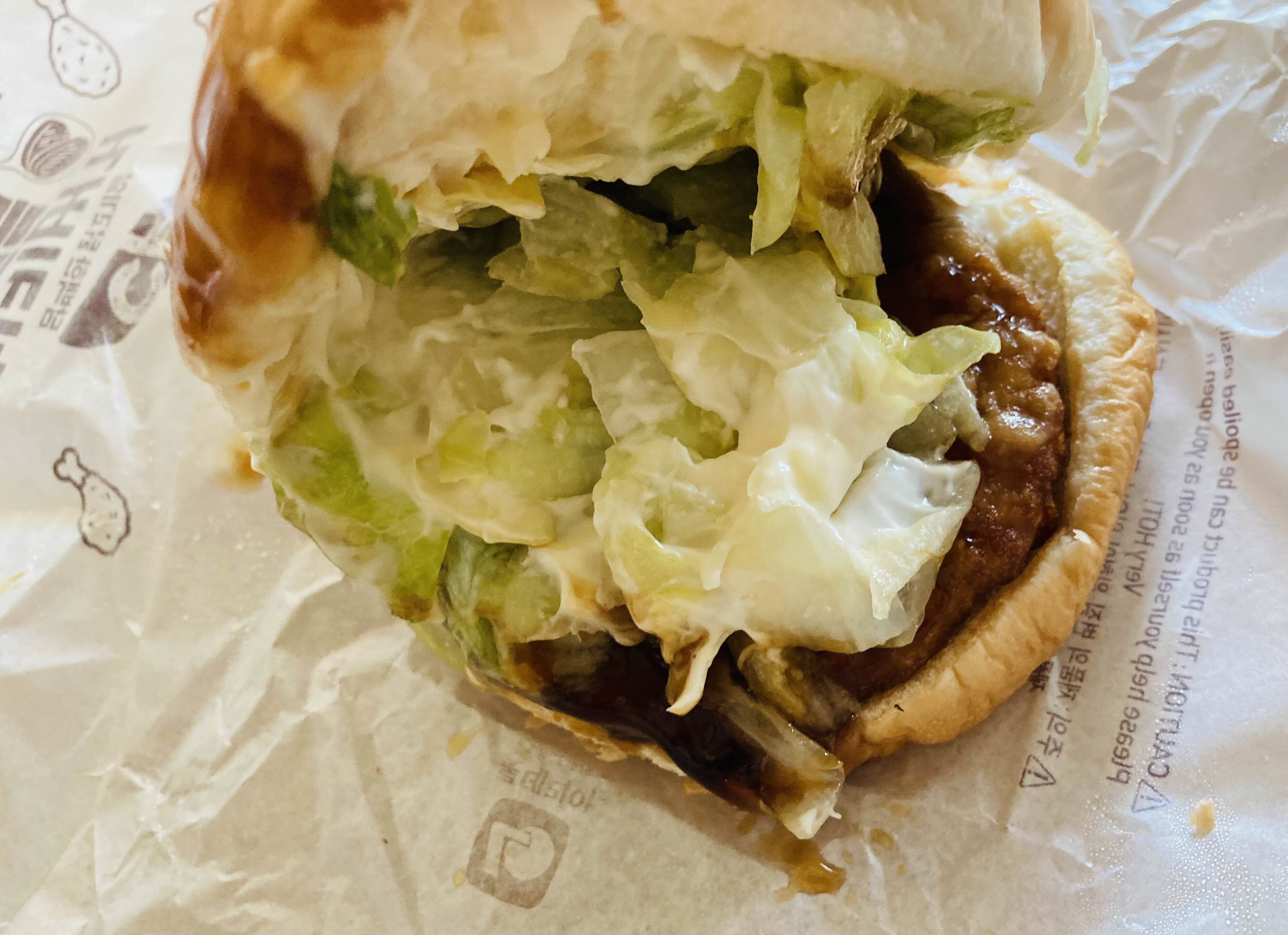 양상추가 메롱하고 있고 데리야끼 소스가 침을 흘리고 있습니다