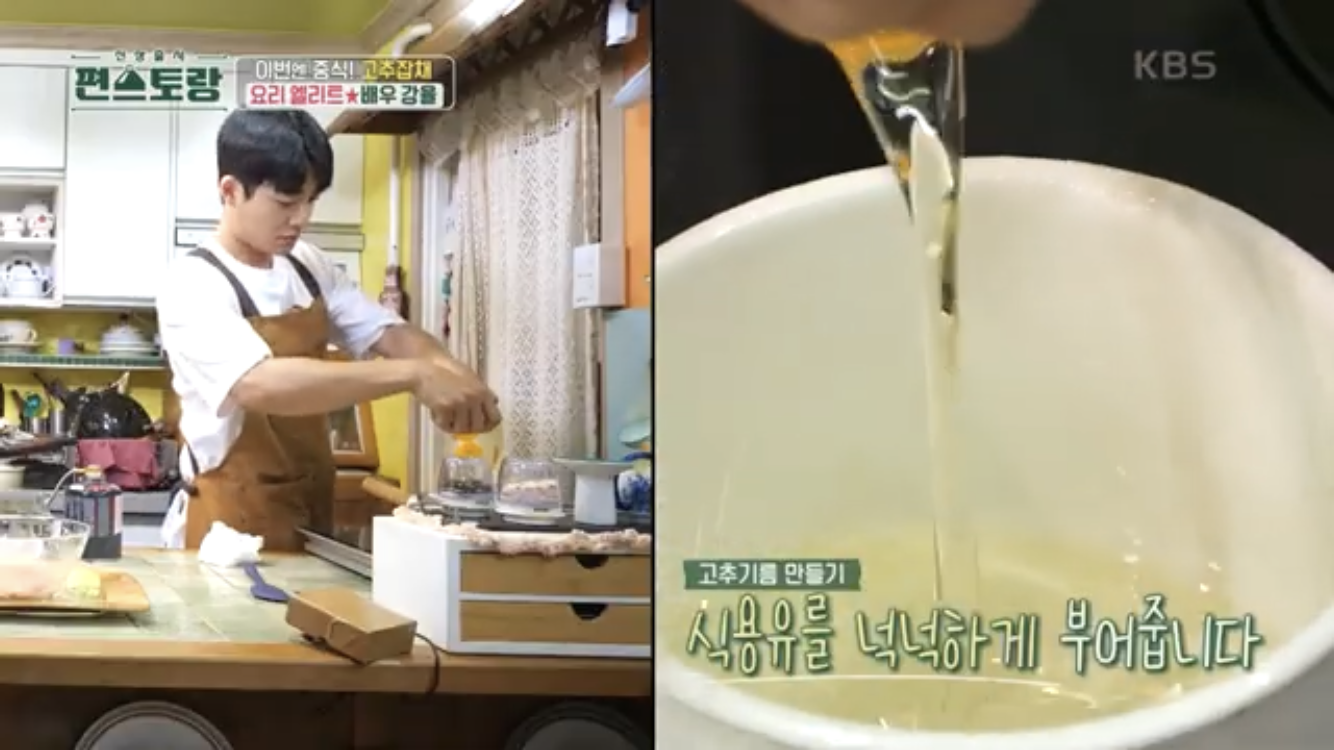 편스토랑에 나온 강율 씨의 고추기름 만드는 법을 소개해 보겠습니다
